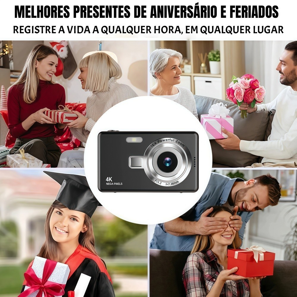 Câmera Digital CCD 4K 16X Mini Retro com 44MP Full HD 1080P de Anti-Vibração Autofoco Vlogging Portátil Para Crianças