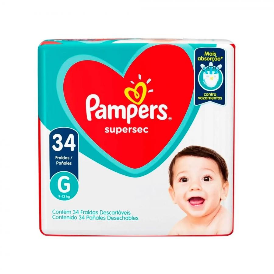 Fralda Pampers Supersec Pacotao Hiper G 34 Unidades – Protecao e Conforto para o Seu Bebe