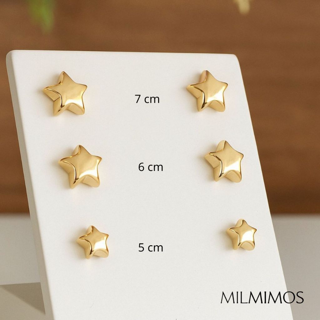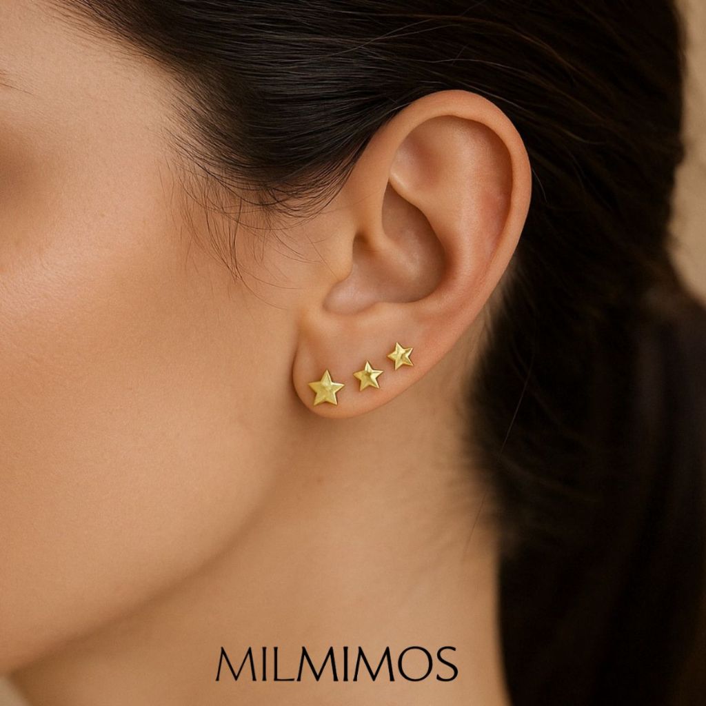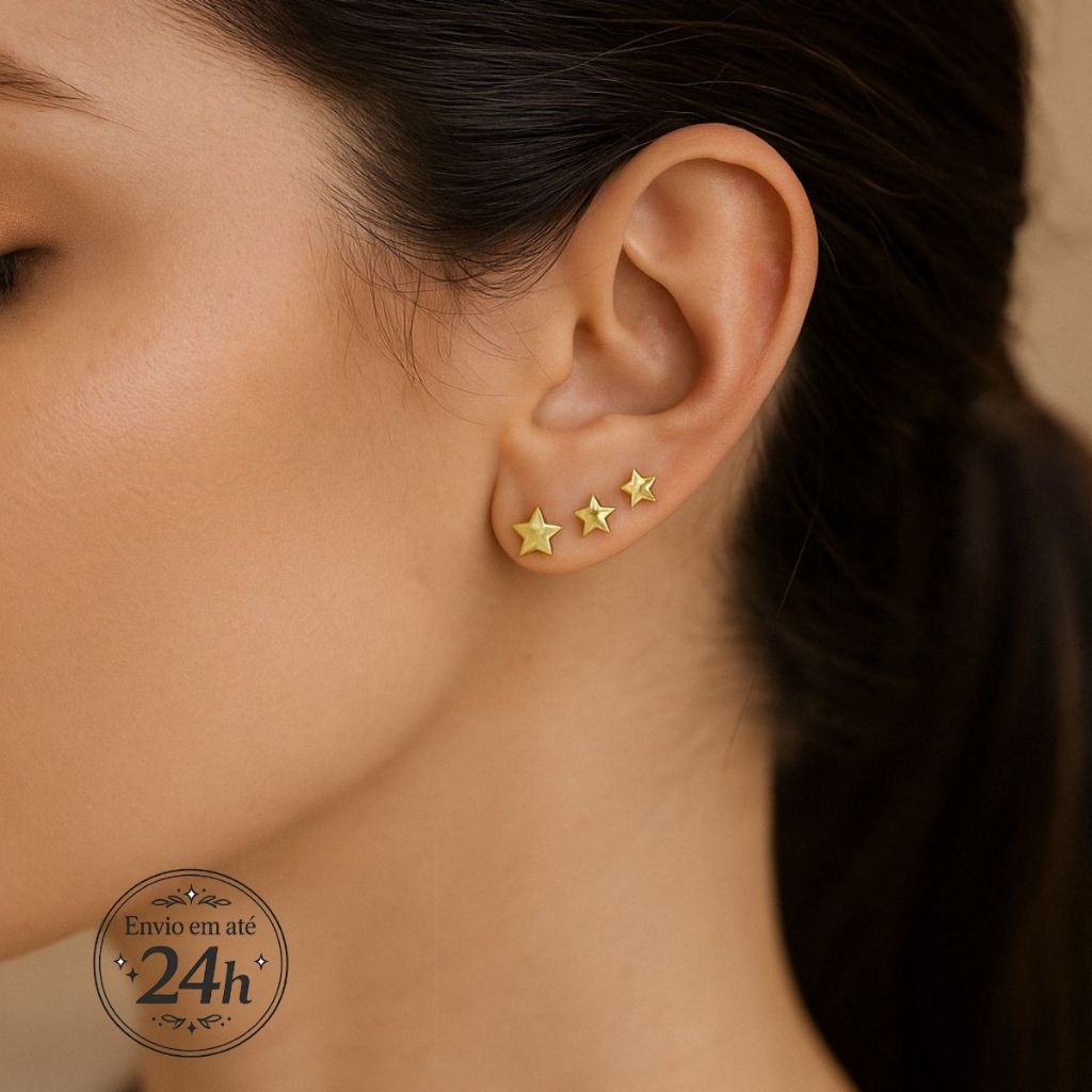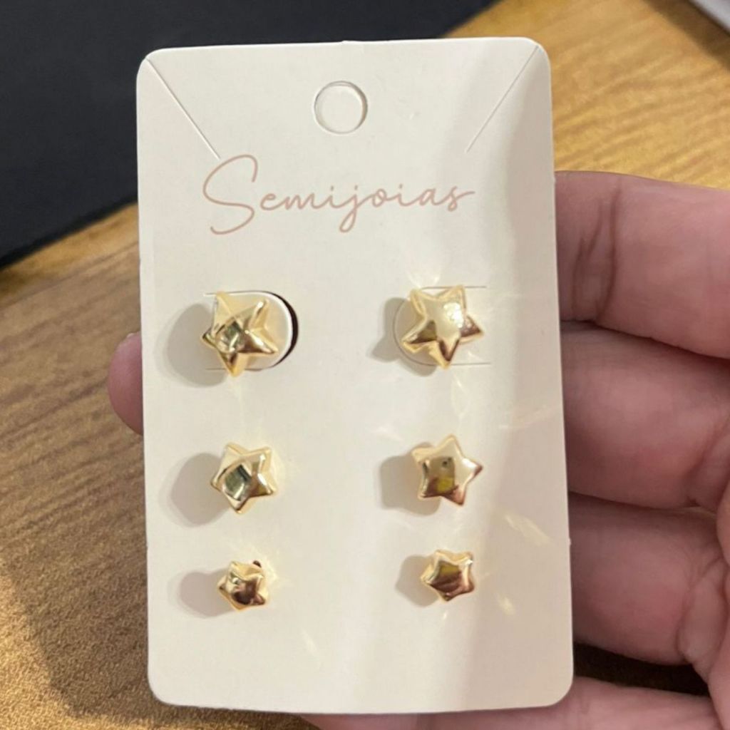 Kit Brincos Trio de Estrelas Minimalista Dourado Segundo Furo - Semijoia banhada - Presente