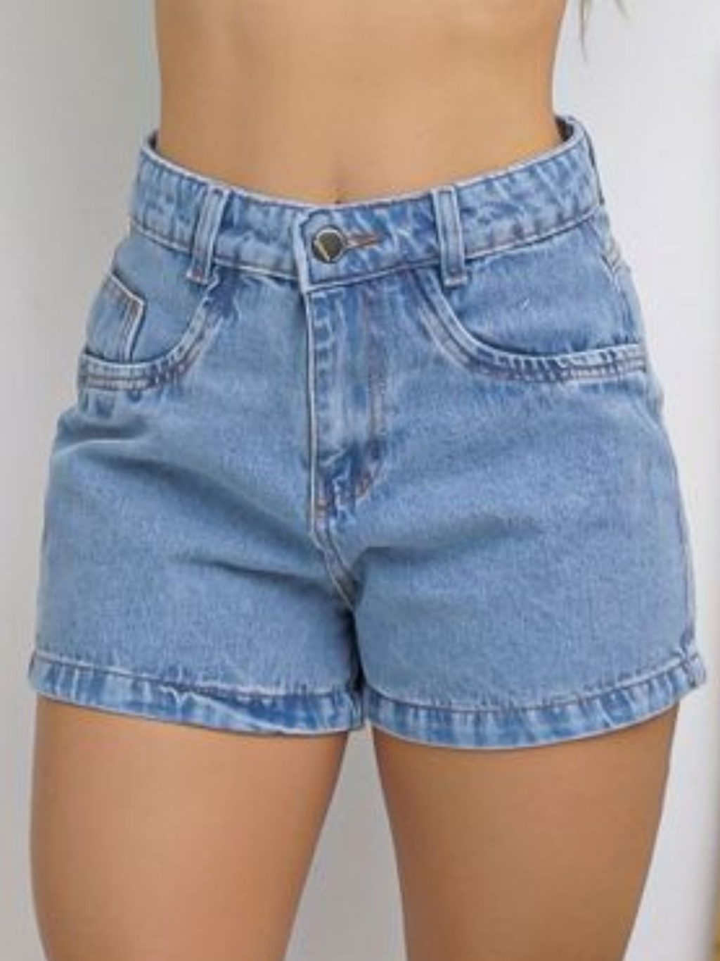 Short Bermuda Jeans Feminino Cintura Alta 100% Algodão Barra Feita