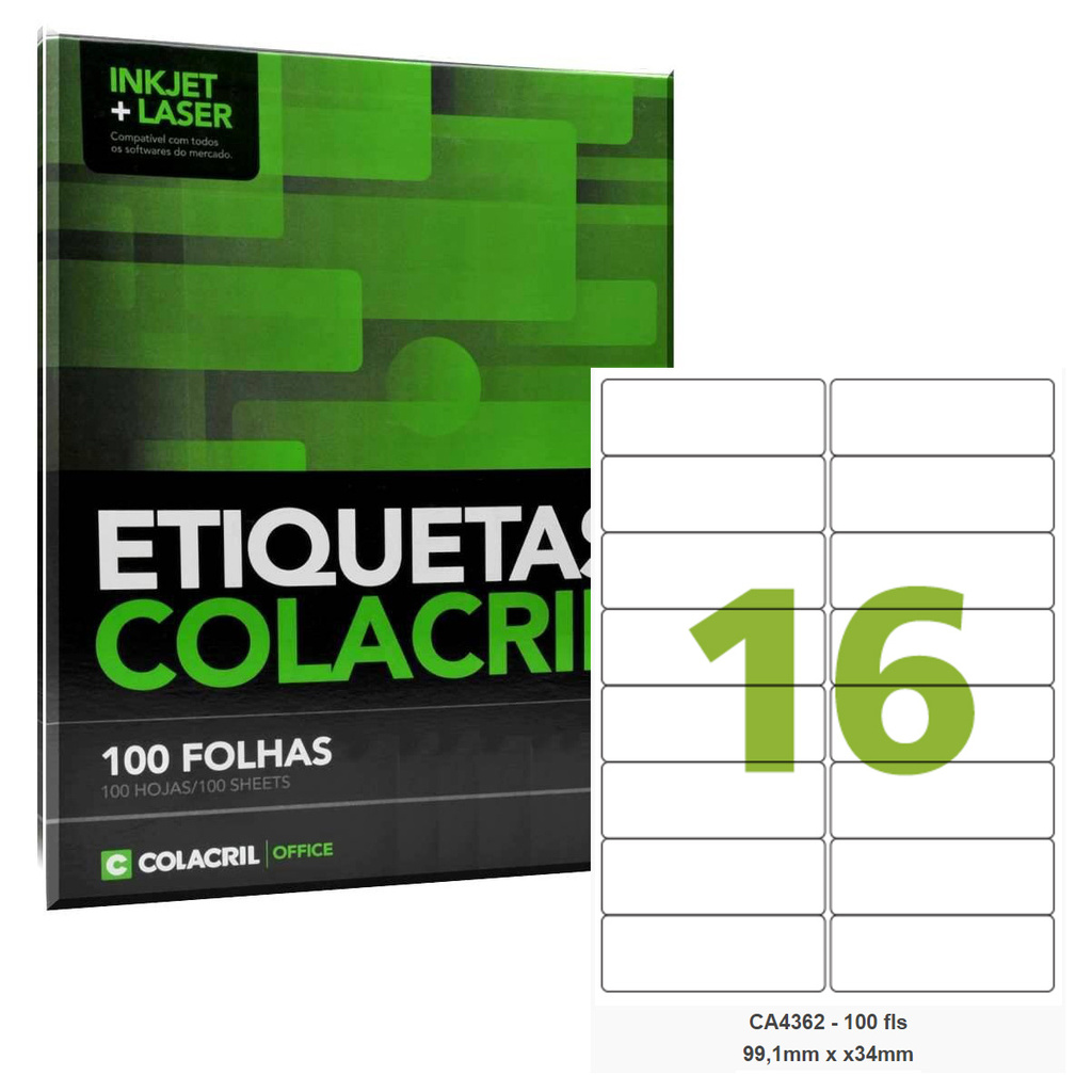 Etiqueta Adesiva A4 CA4362 99,1 x 34 mm 100 Folhas Colacril