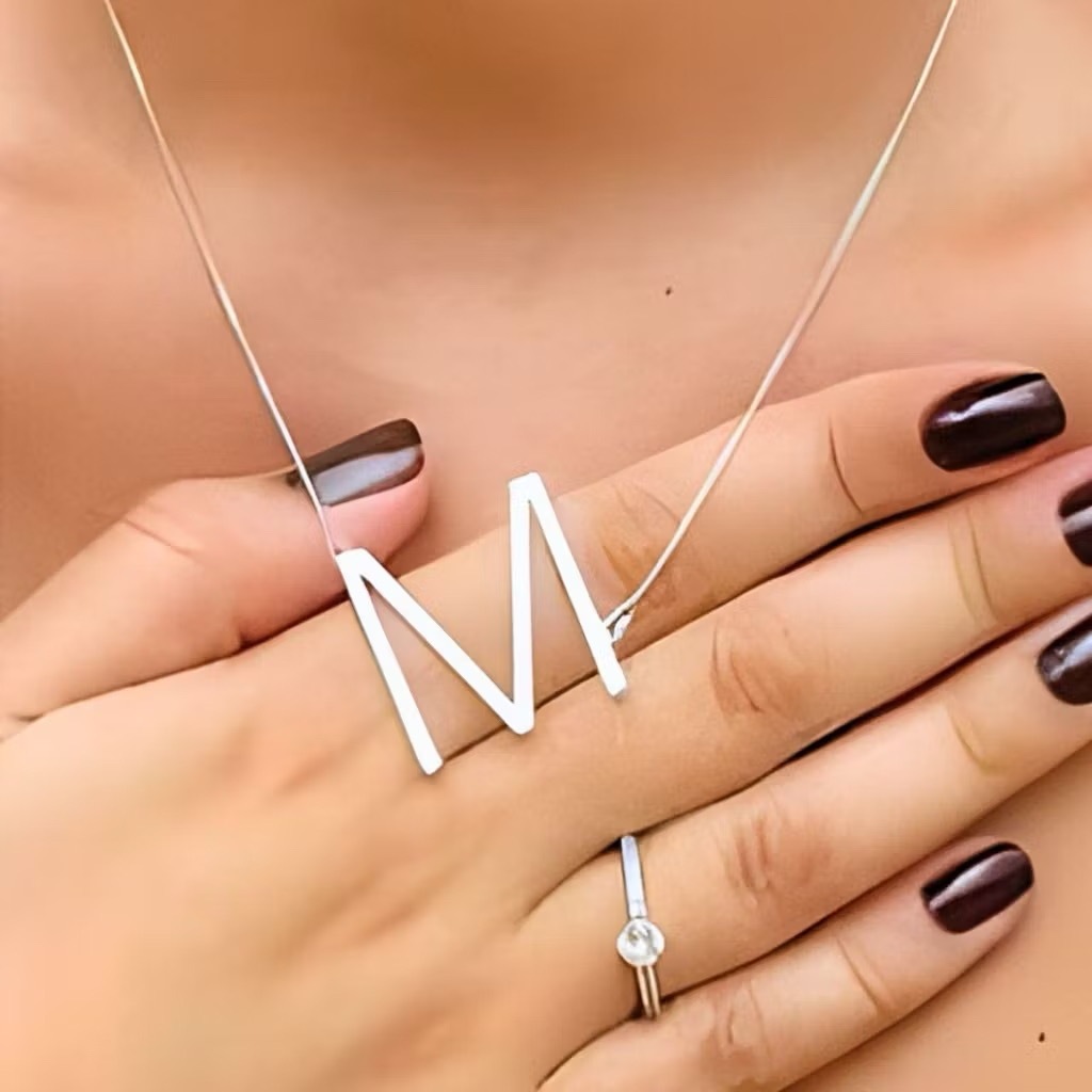 Colar Letra Lisa Folheado Inicial Cravejada cordão veneziana Semi Joia Banhada Folheado a Ouro 18K e Prata 925 4cm