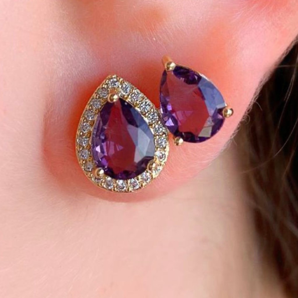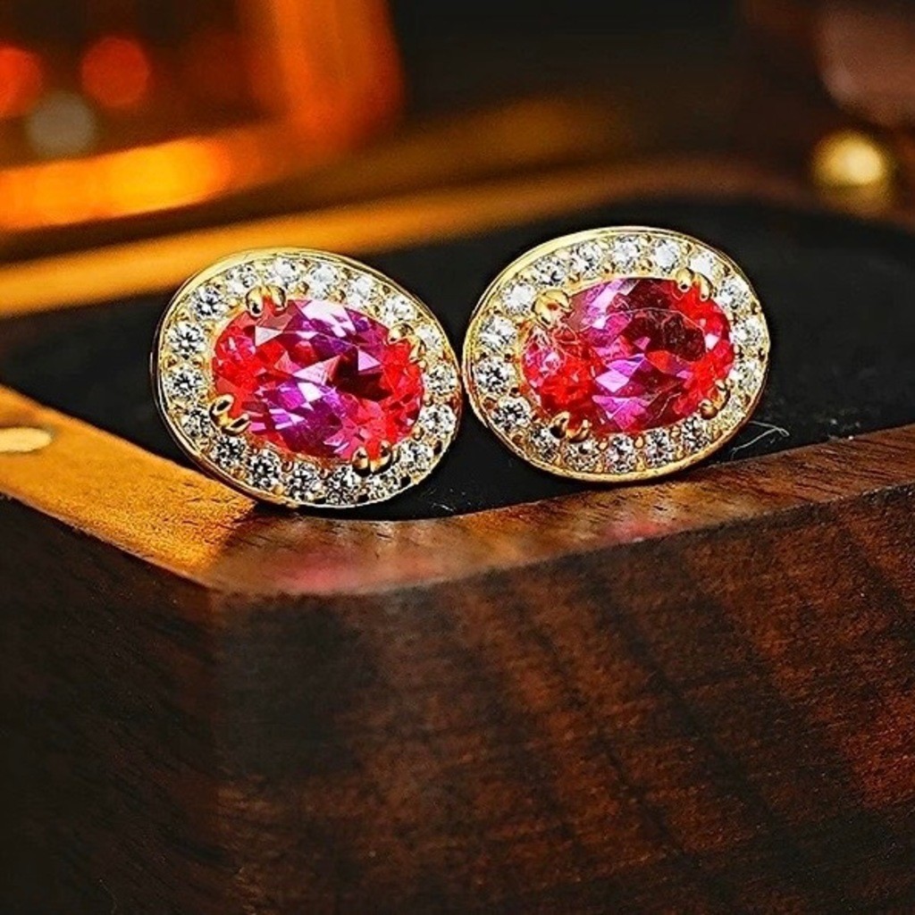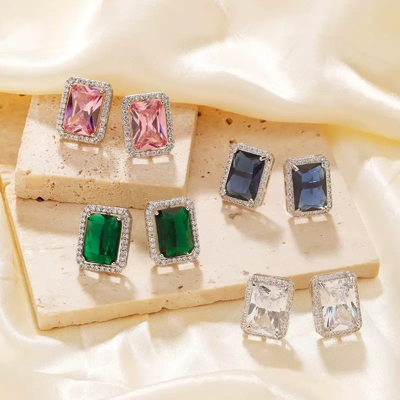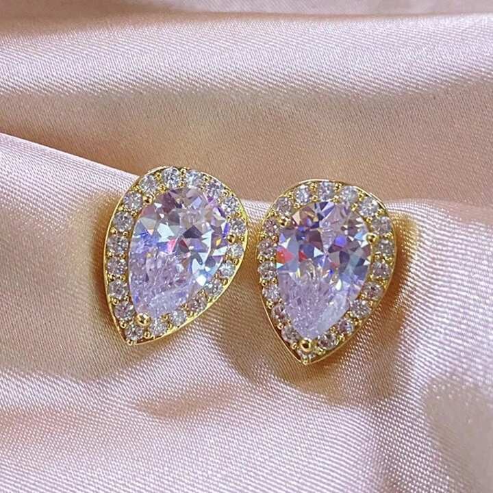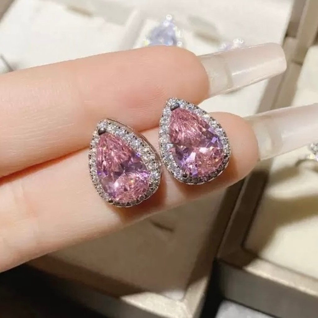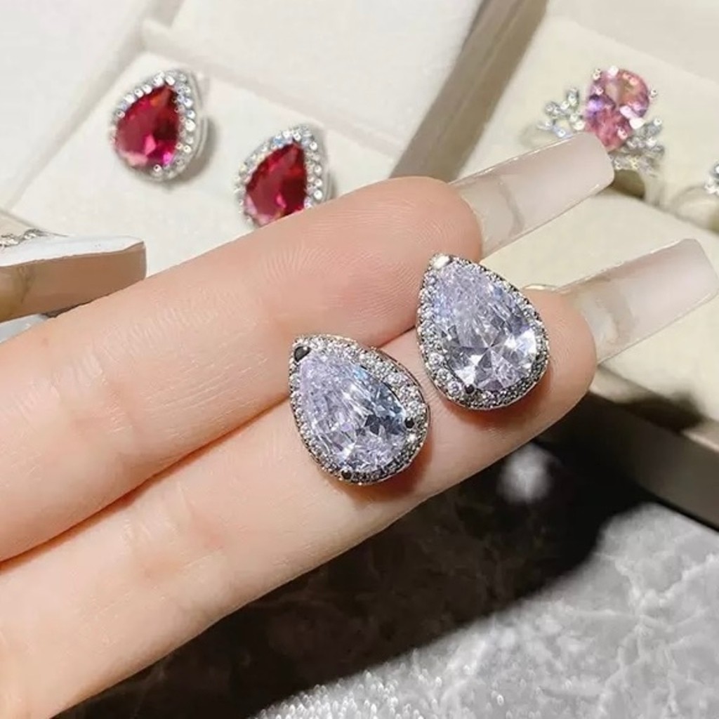 1 par Brincos de Pressão com Formato de Coração /Gota/quadrado/Redondo Decorados com Strass Vermelhos da Moda Semi-joias