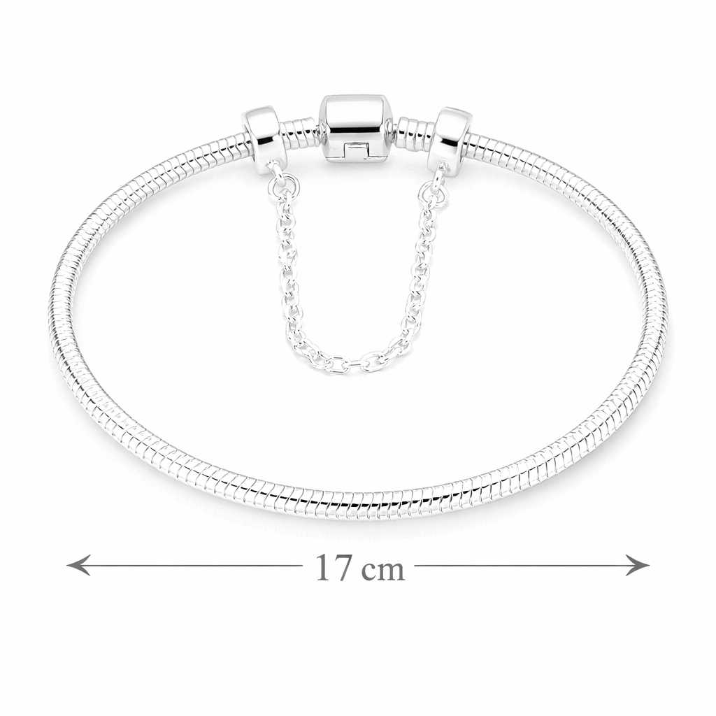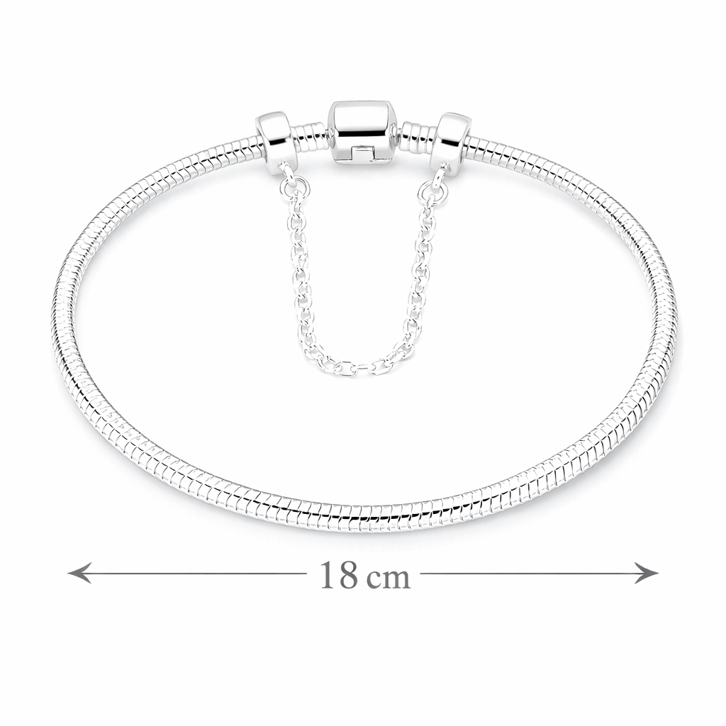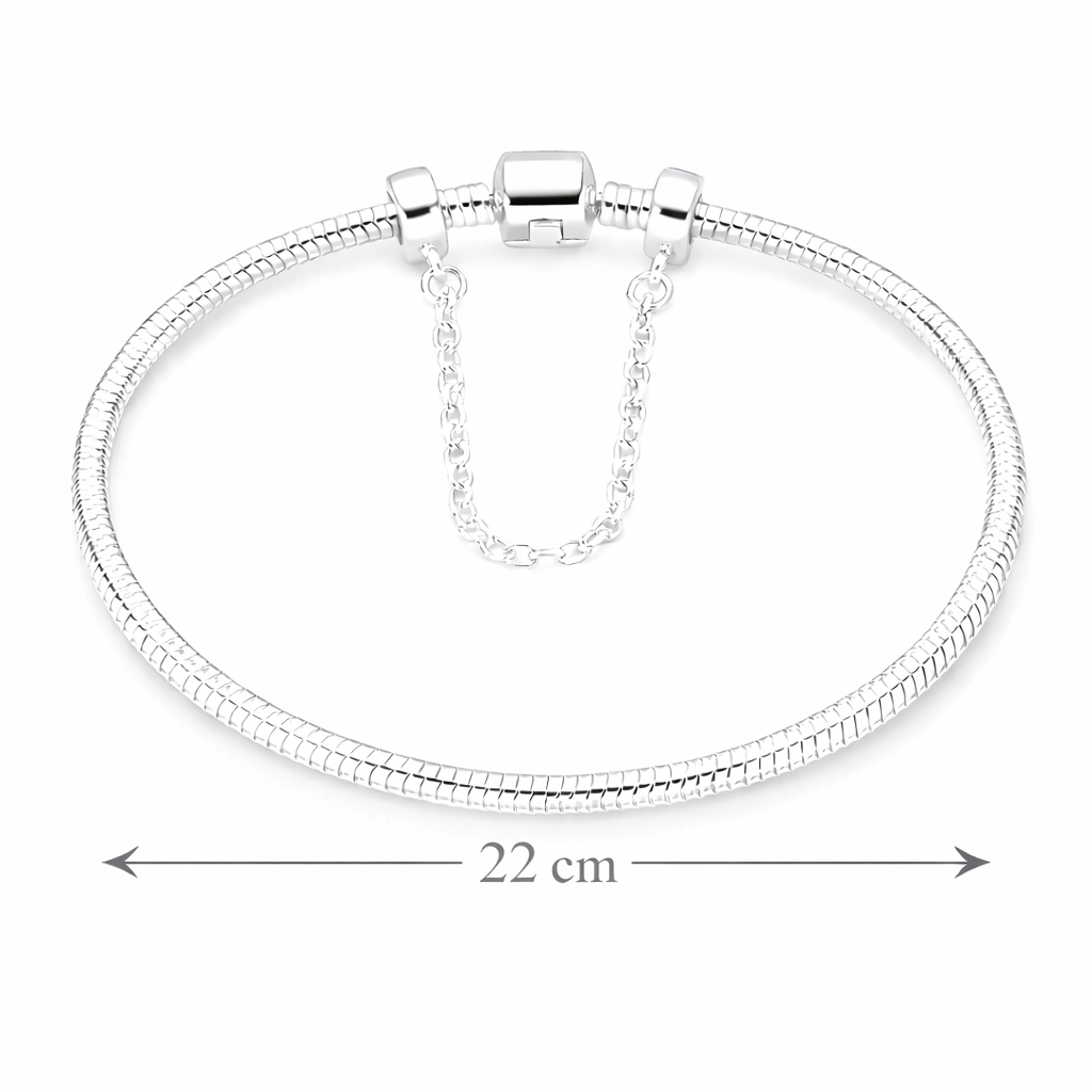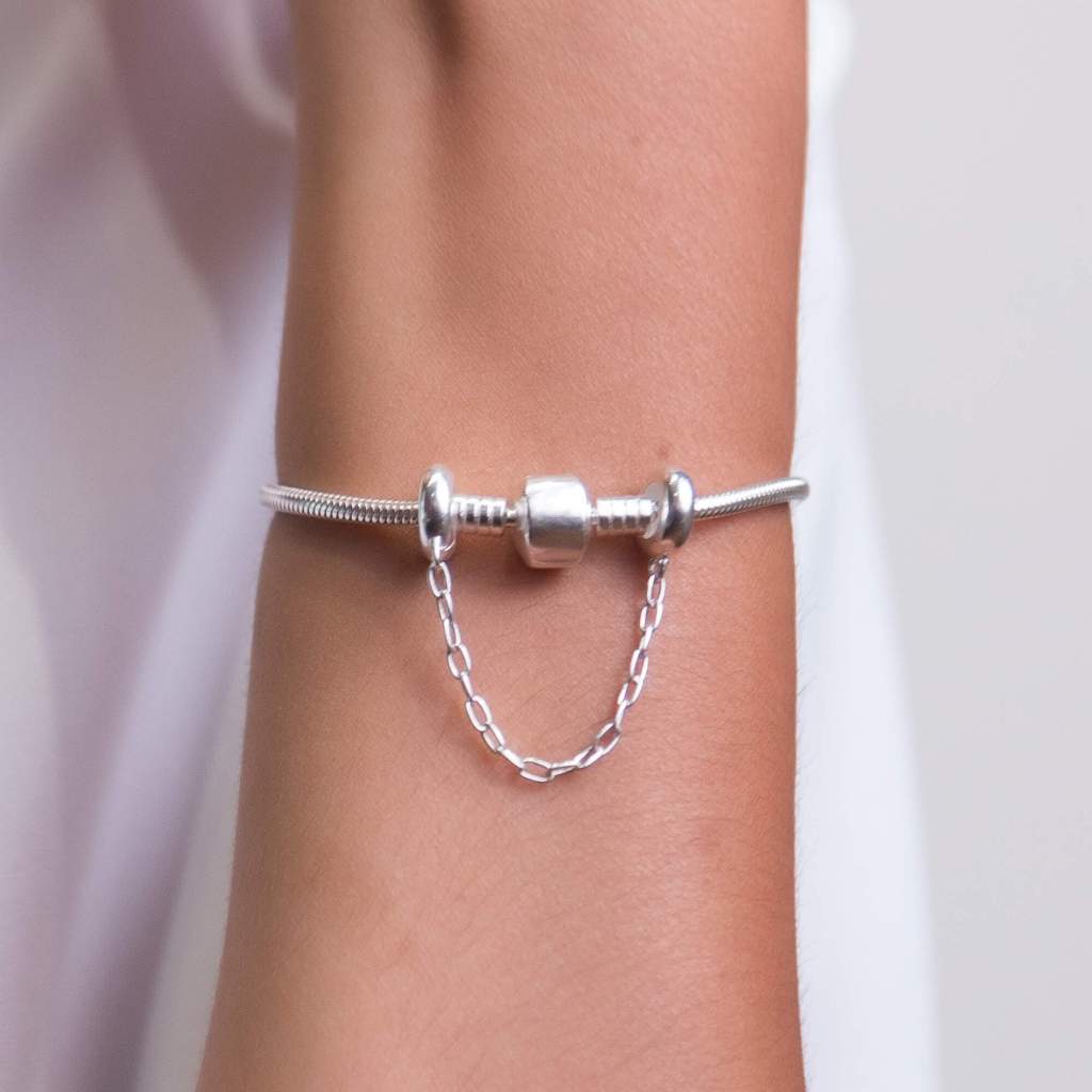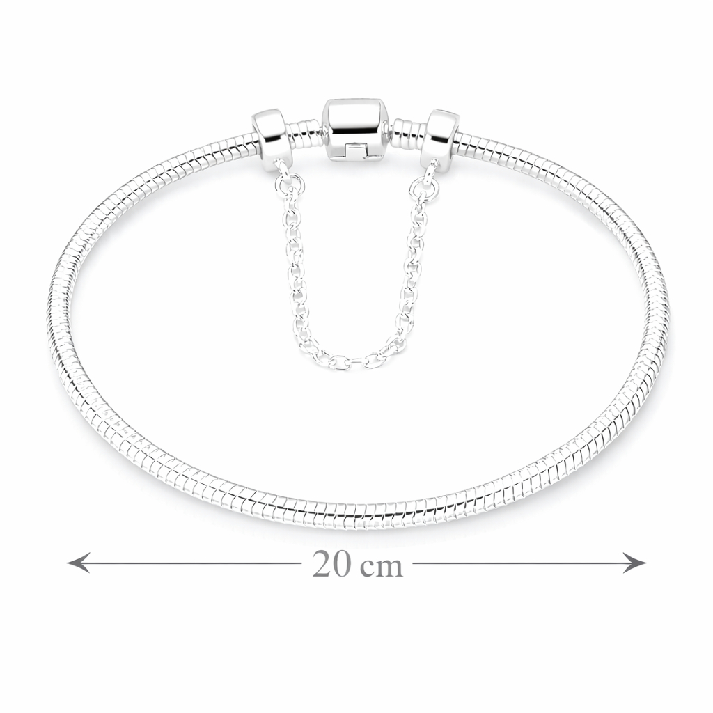 Pulseira Berloque Banhada a Prata Modelo Cobra com Trava de Segurança + Caixinha/Estojo Porta-Joias | Presente