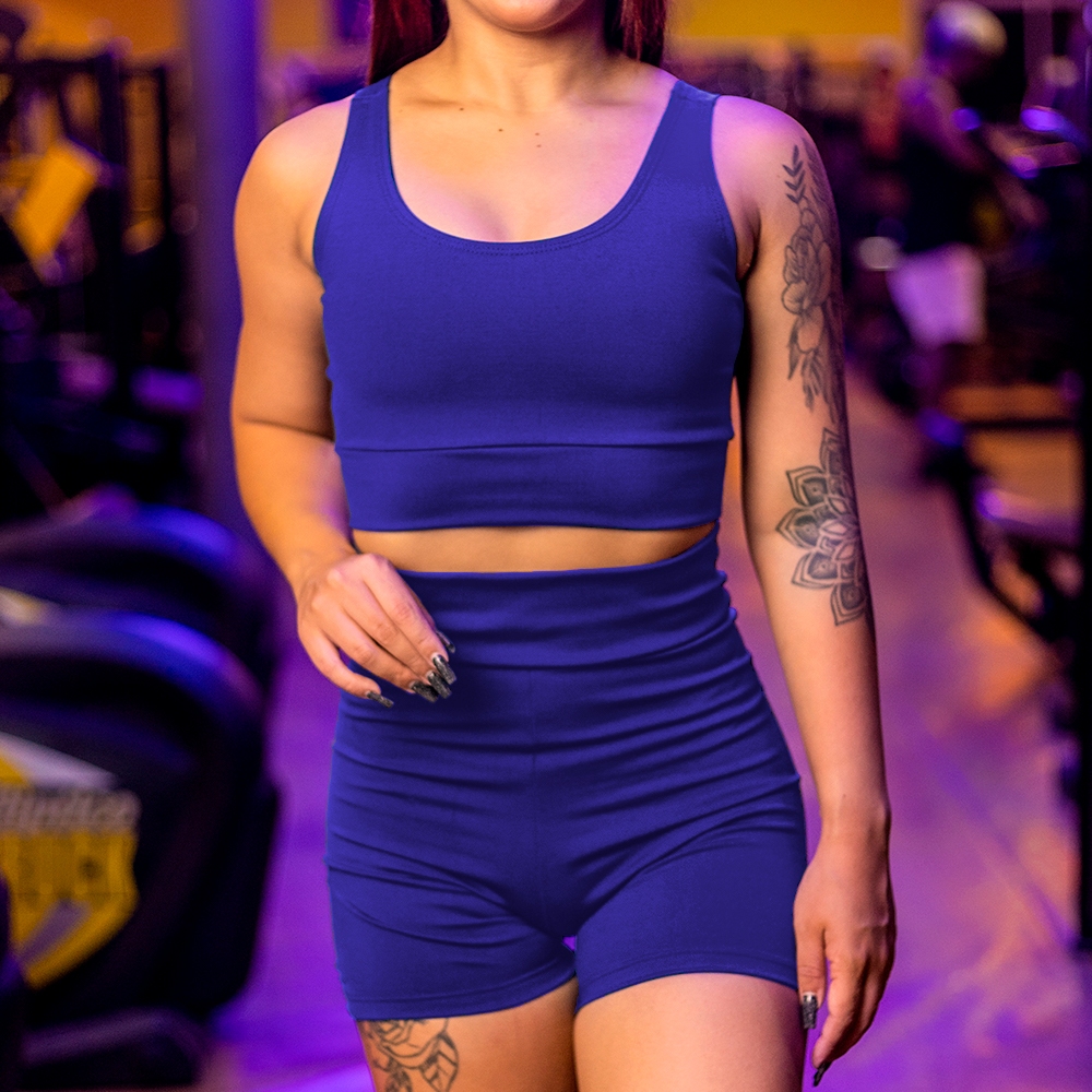CONJUNTO ACADEMIA FEMININO TOP E SHORT CINTURA ALTA EM SUPLEX