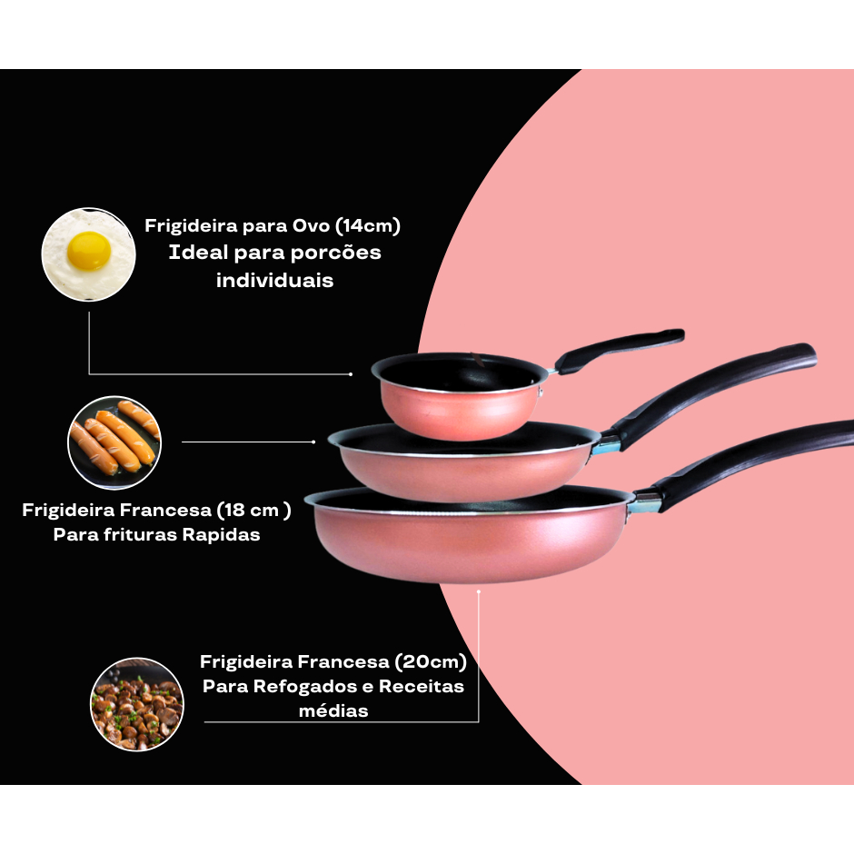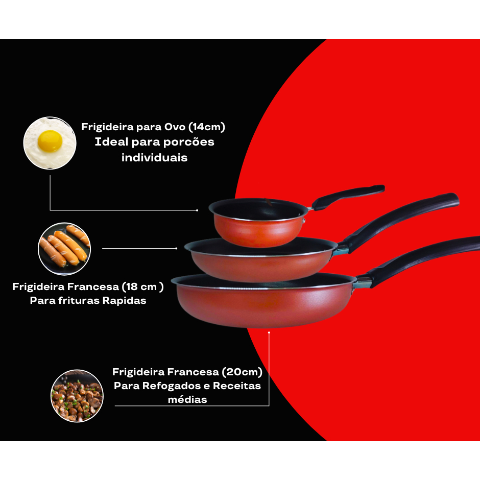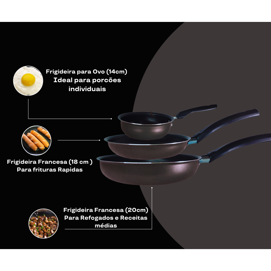 Conjunto de Frigideiras 3 Peças Antiaderente – Versatilidade e Eficiência na Cozinha