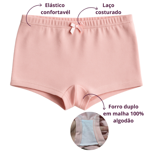 Kit 3 Calcinha Infantil Box Boxer Shorts Shortinho Cores Neutras Cottom Premium Algodão Tapa Fralda
