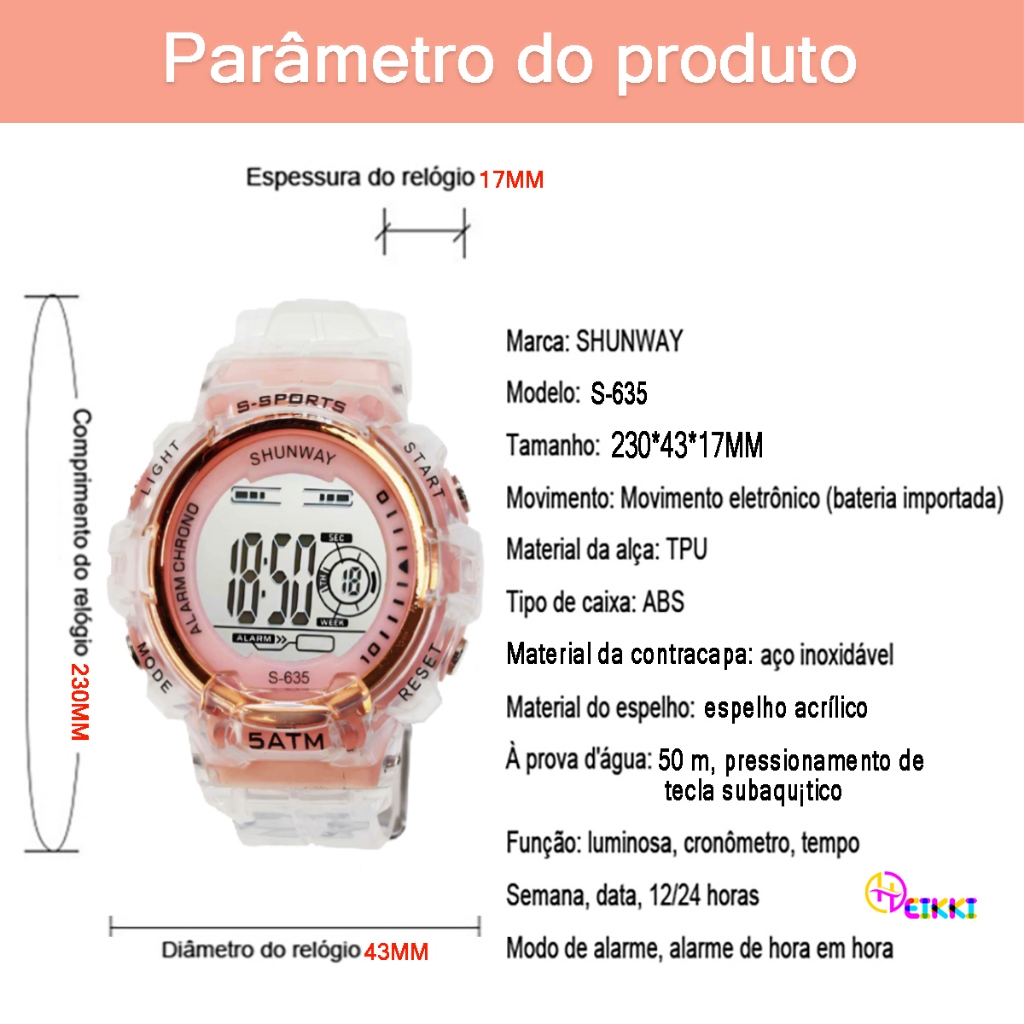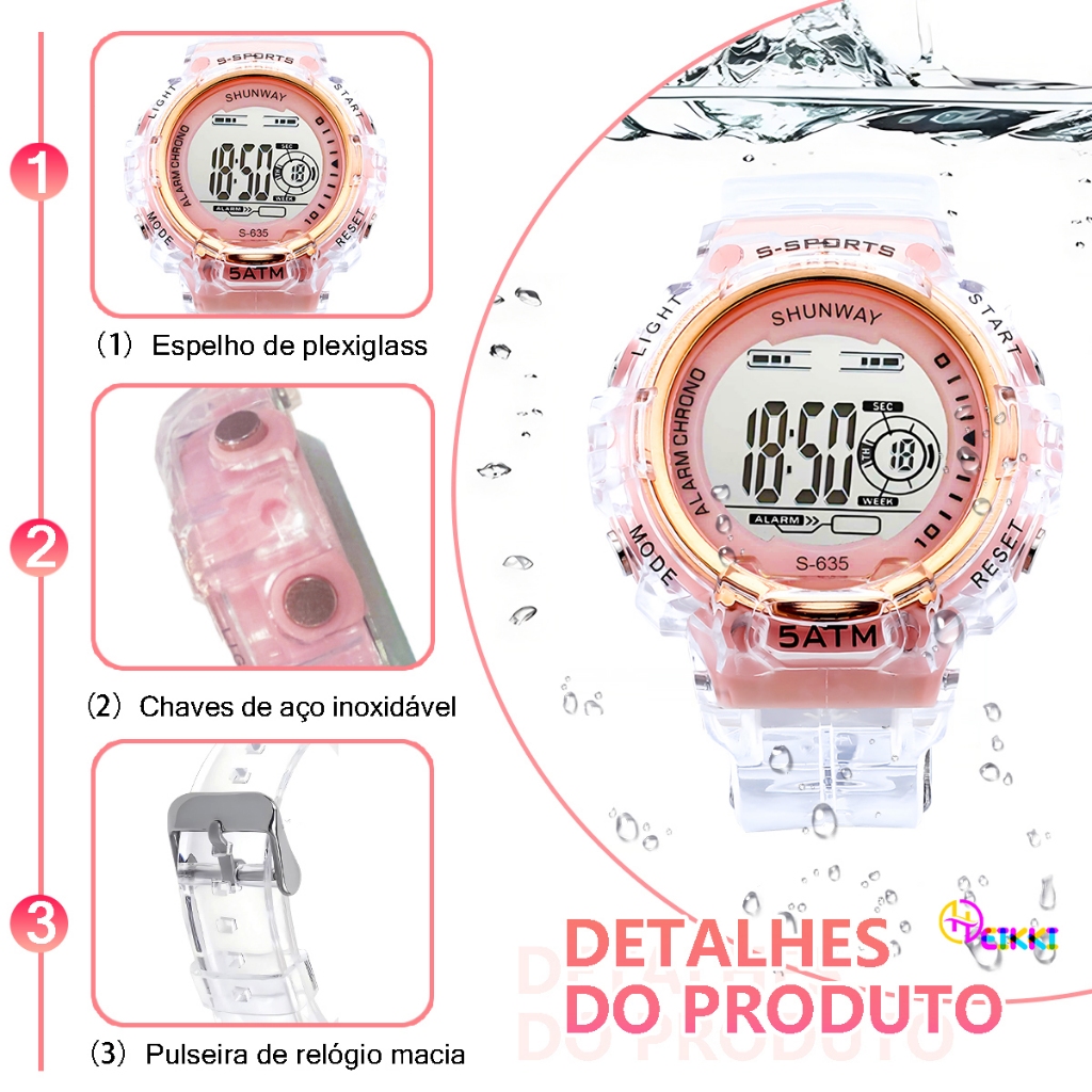 Relógio De Pulso Feminino Digital Original À Prova D'água Luminoso Relógio Mulher Esportivo Fashion Transparente