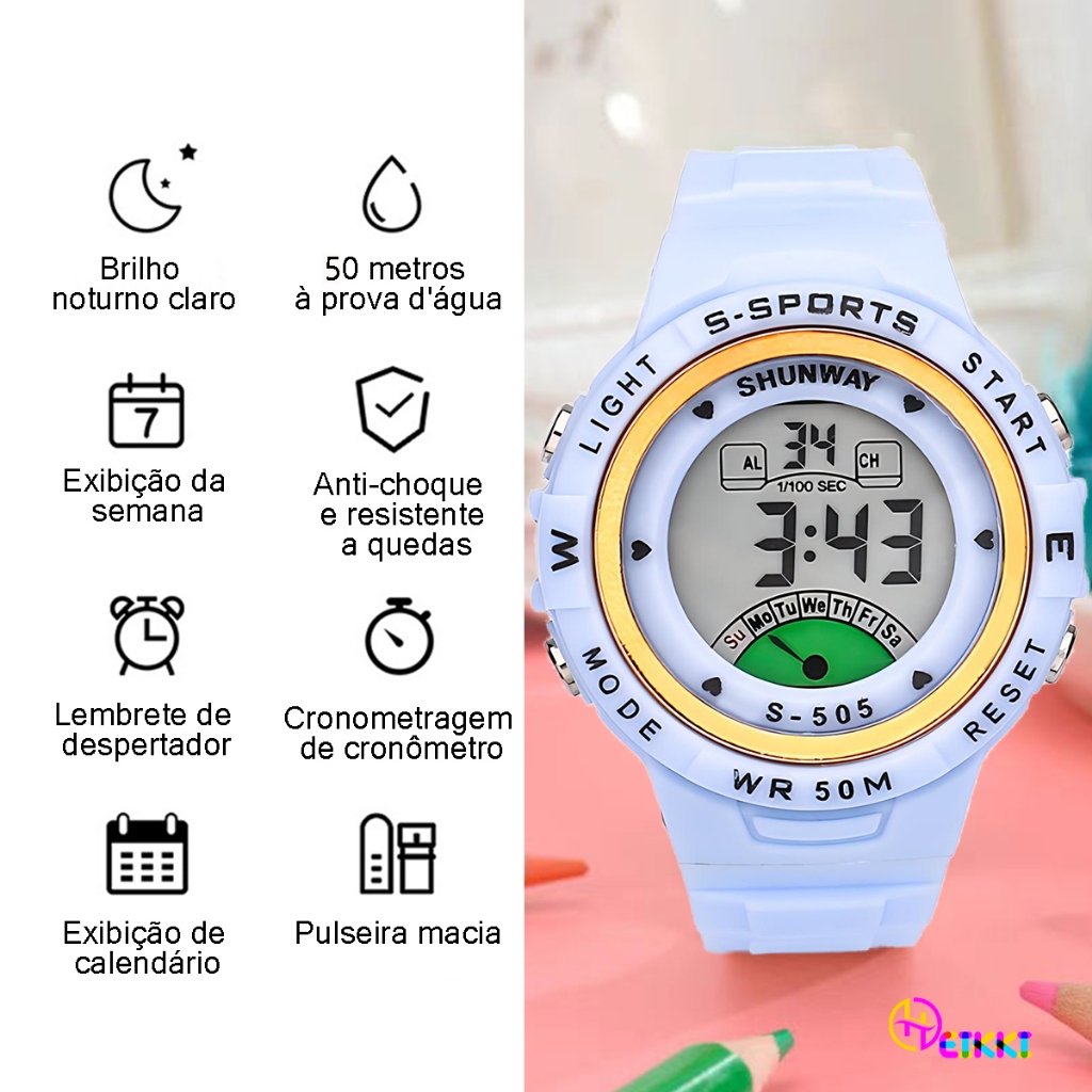 Relógio Infantil Digital A Prova De Água Crianças LED Luminoso Feminino De Moda Esportivo Redondo