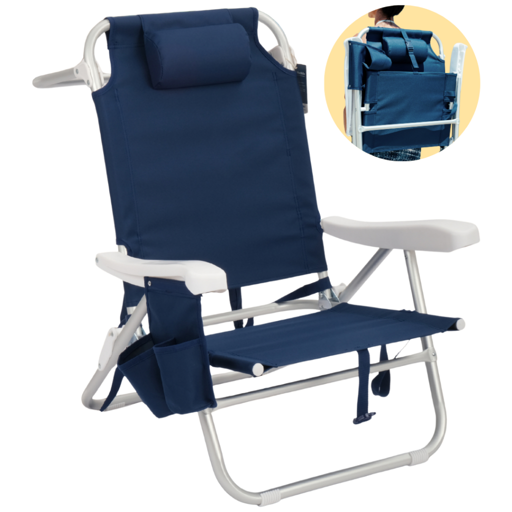 Cadeira de Praia Mochila Dobrável Reclinável Alumínio Portátil Leve 5 Posições Camping NAU