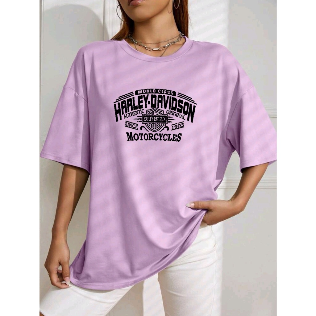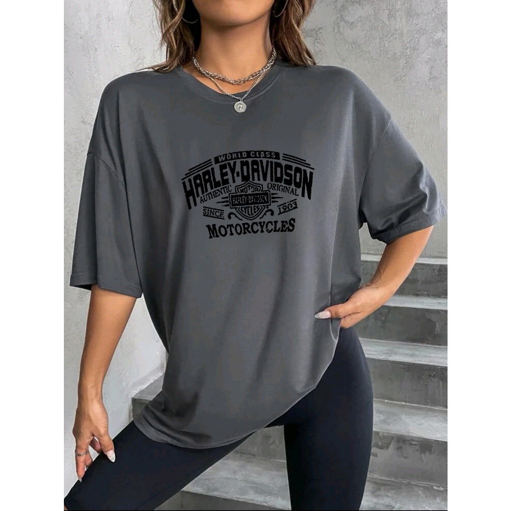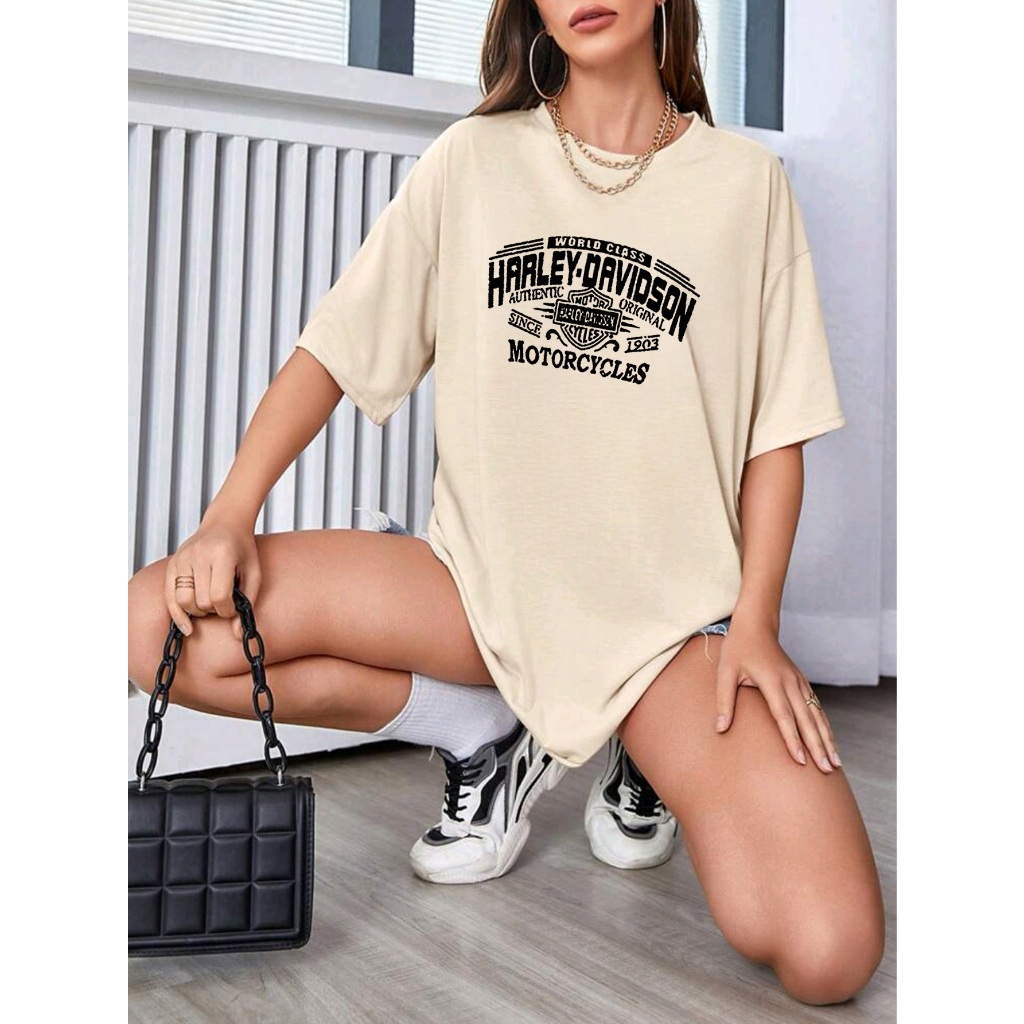 Oversized T-shirt camiseta feminina ombro caído ocasional com letra e gráfico estampada