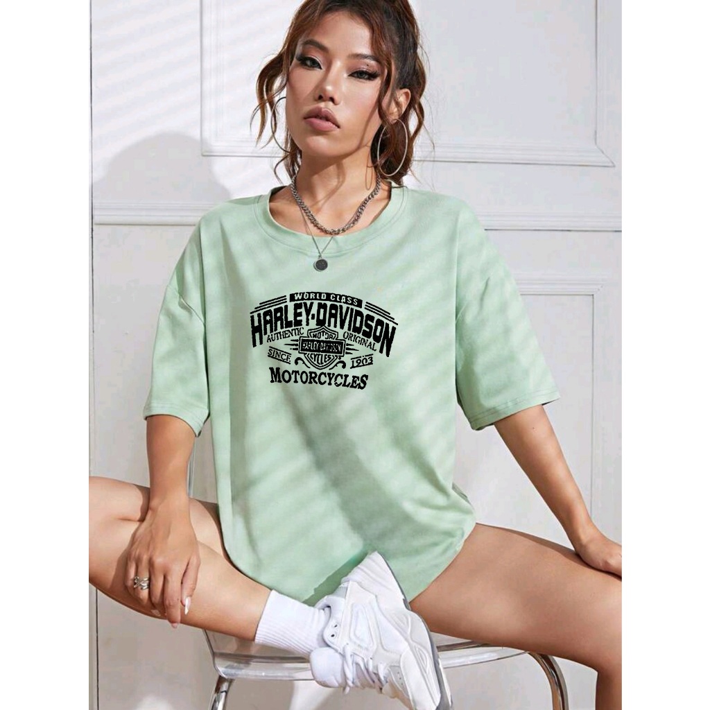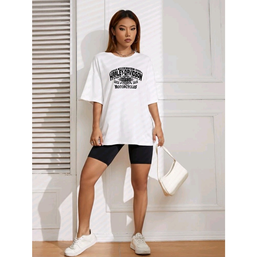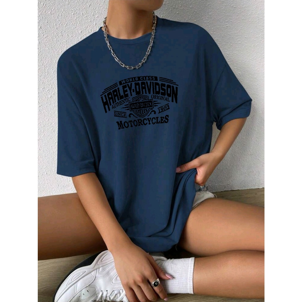 Oversized T-shirt camiseta feminina ombro caído ocasional com letra e gráfico estampada