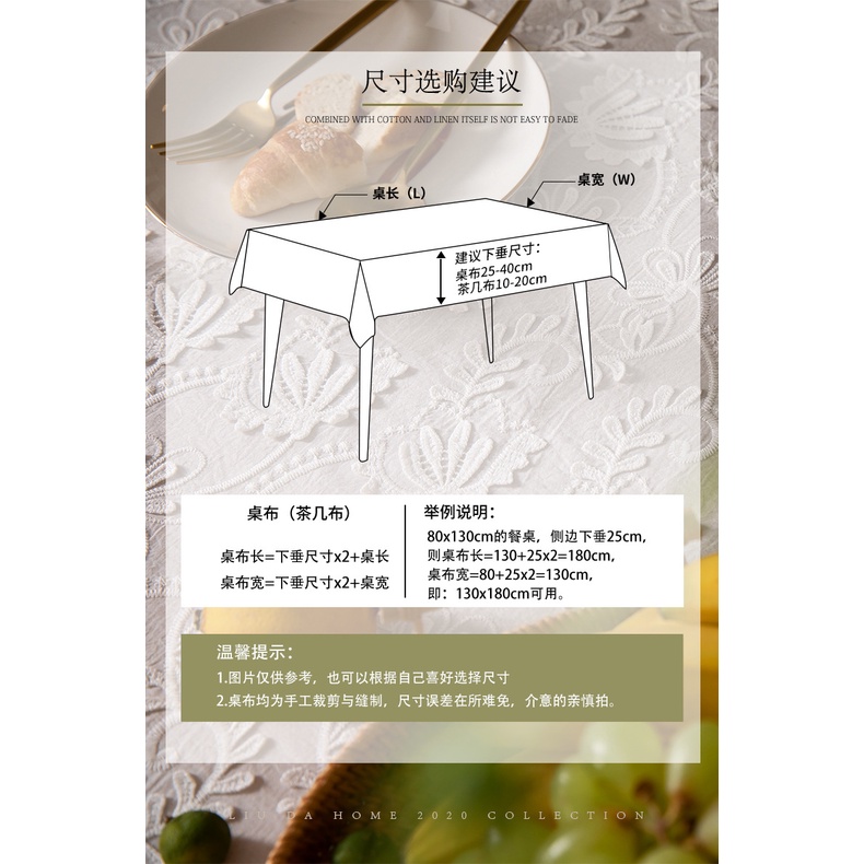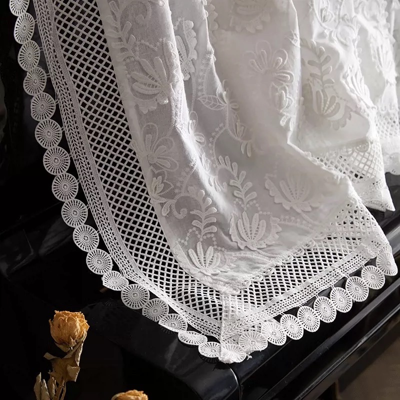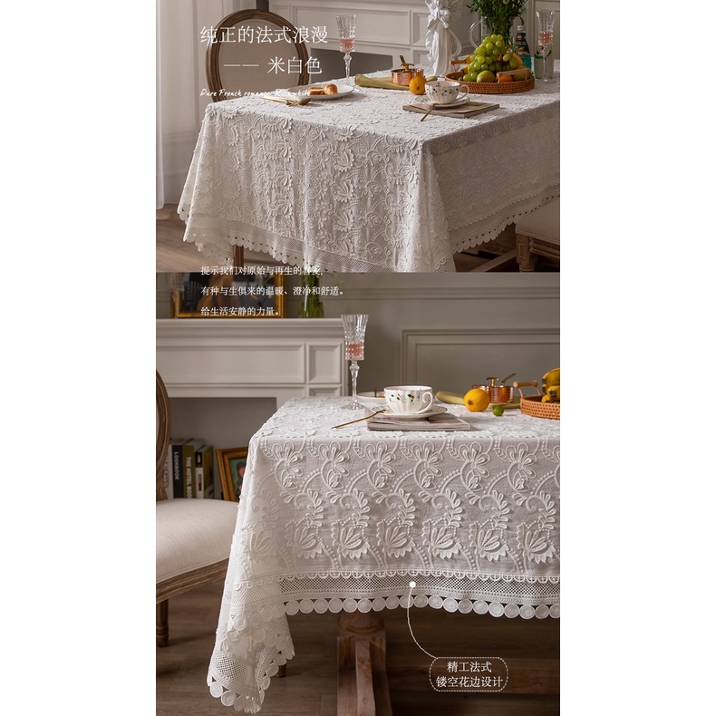 Lace table cloth 100% cotton dust-proof luxury table cushion white embroidered table decoration
