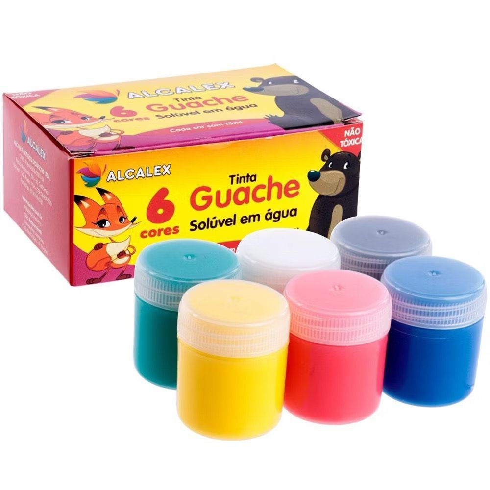 Kit 5 Caixas Tinta Guache 15ml Caixa Com 6 Cores Diferentes 30 Tintas Infantil Escolar Alcalex
