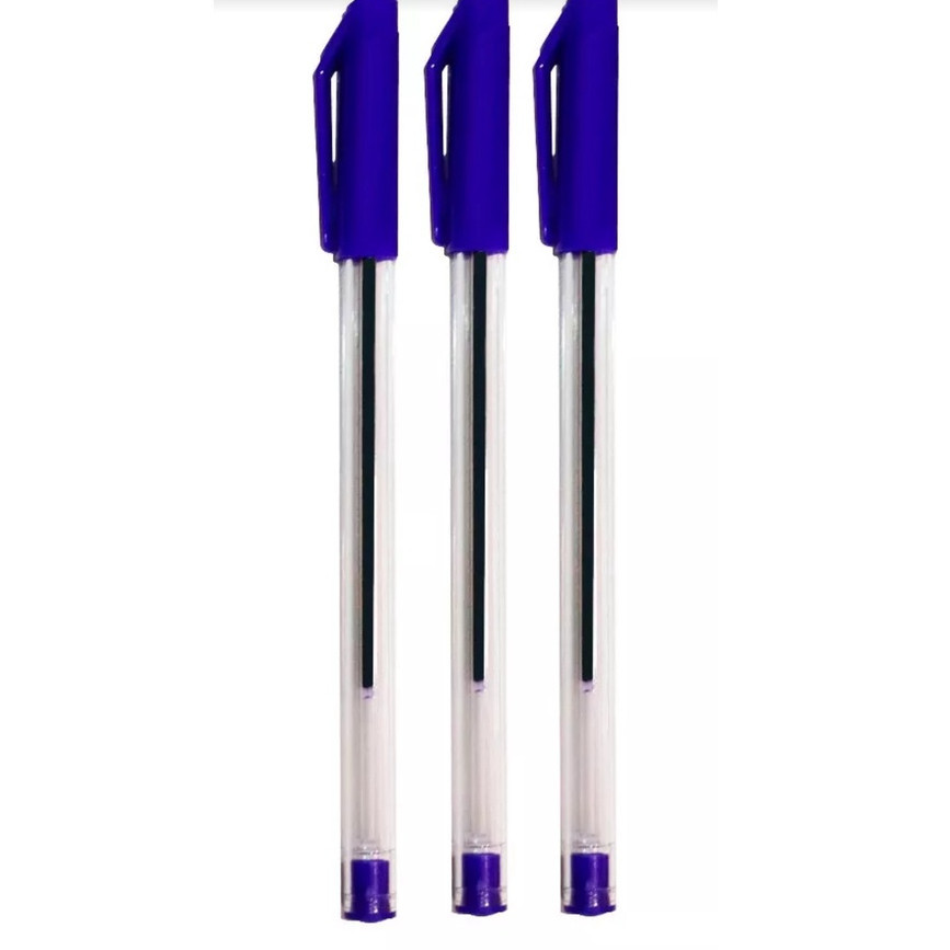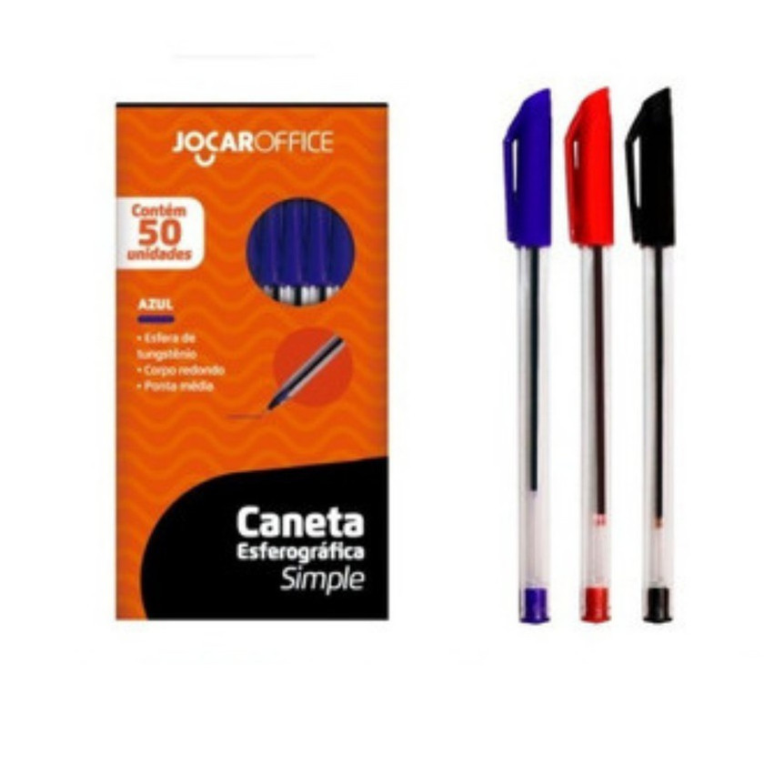 Kit 3 Canetas Esferográficas Ponta Média Simple Azul Preta Vermelha Escolar Escritório Leo&Leo