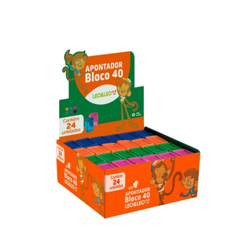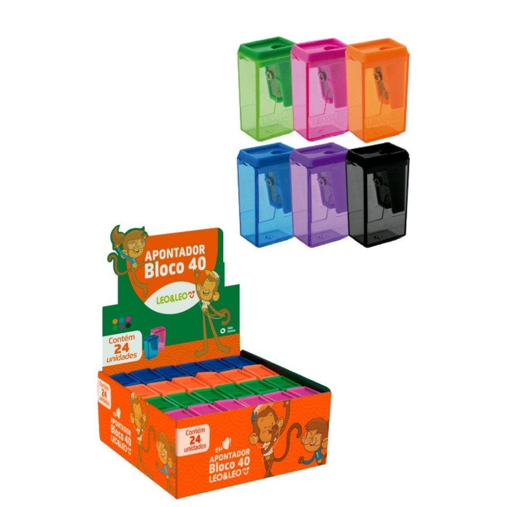 Kit 24 Apontadores Com Depósito Bloco 40 NEON Trend Escolar Escritório Leo&Leo