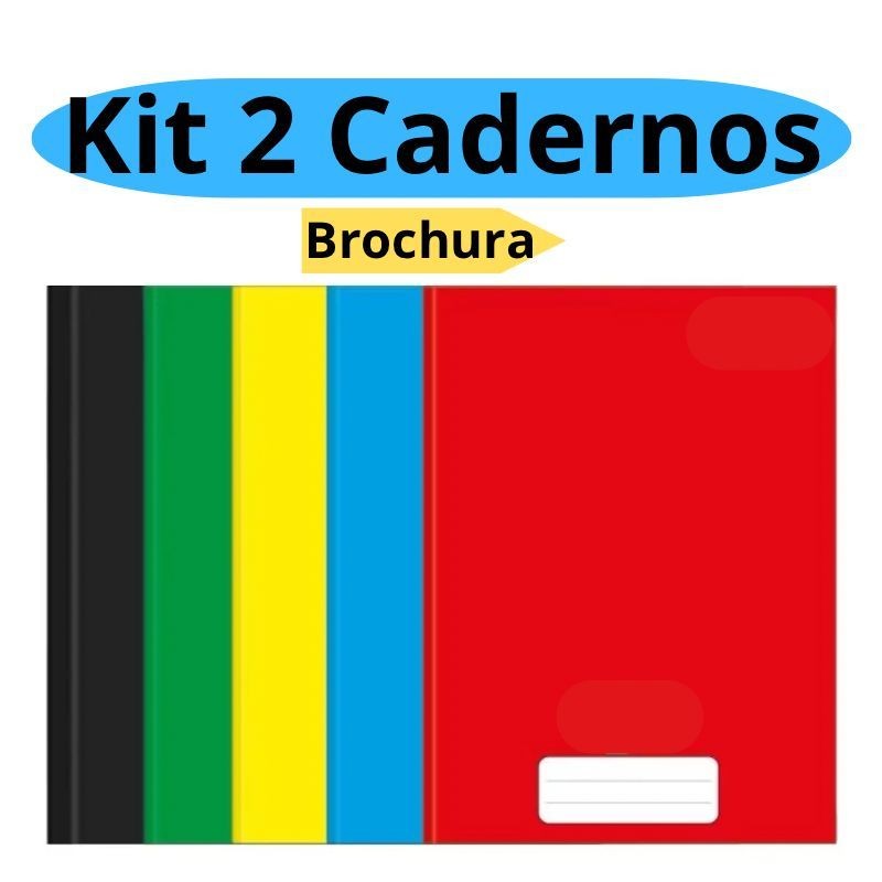 Kit 2 Cadernos Brochura Grande A4 96 folhas Capa Dura Brochurao Escolar Infantil Credeal