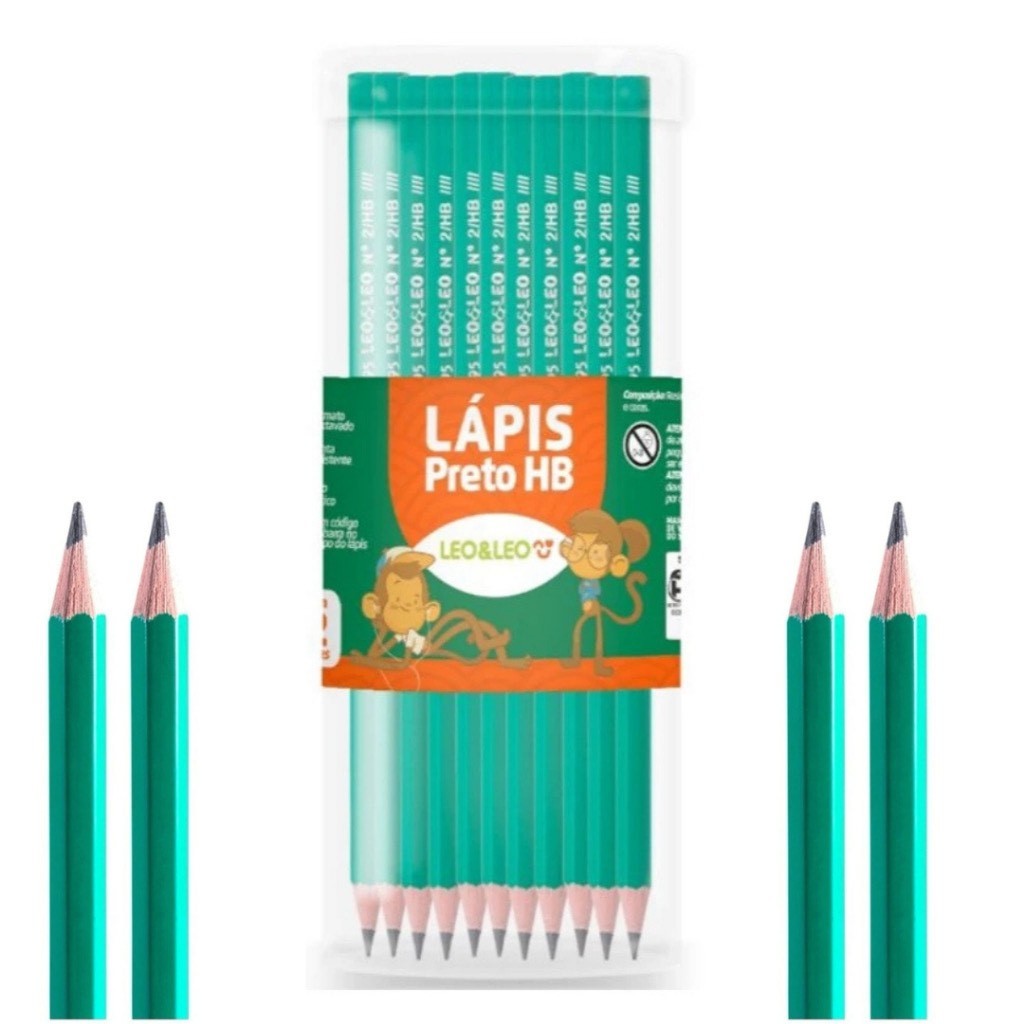 Kit 50 lápis de Escrever Nº2 Preto + 50 Borracha Escolar Ponteira Branca LEO&LEO Escolar Escola Estudo