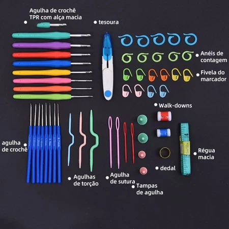 Kit 53 peças Kit Crochê Completo Ferramentas Para Fazer Amigurumi Agulhas Acessórios