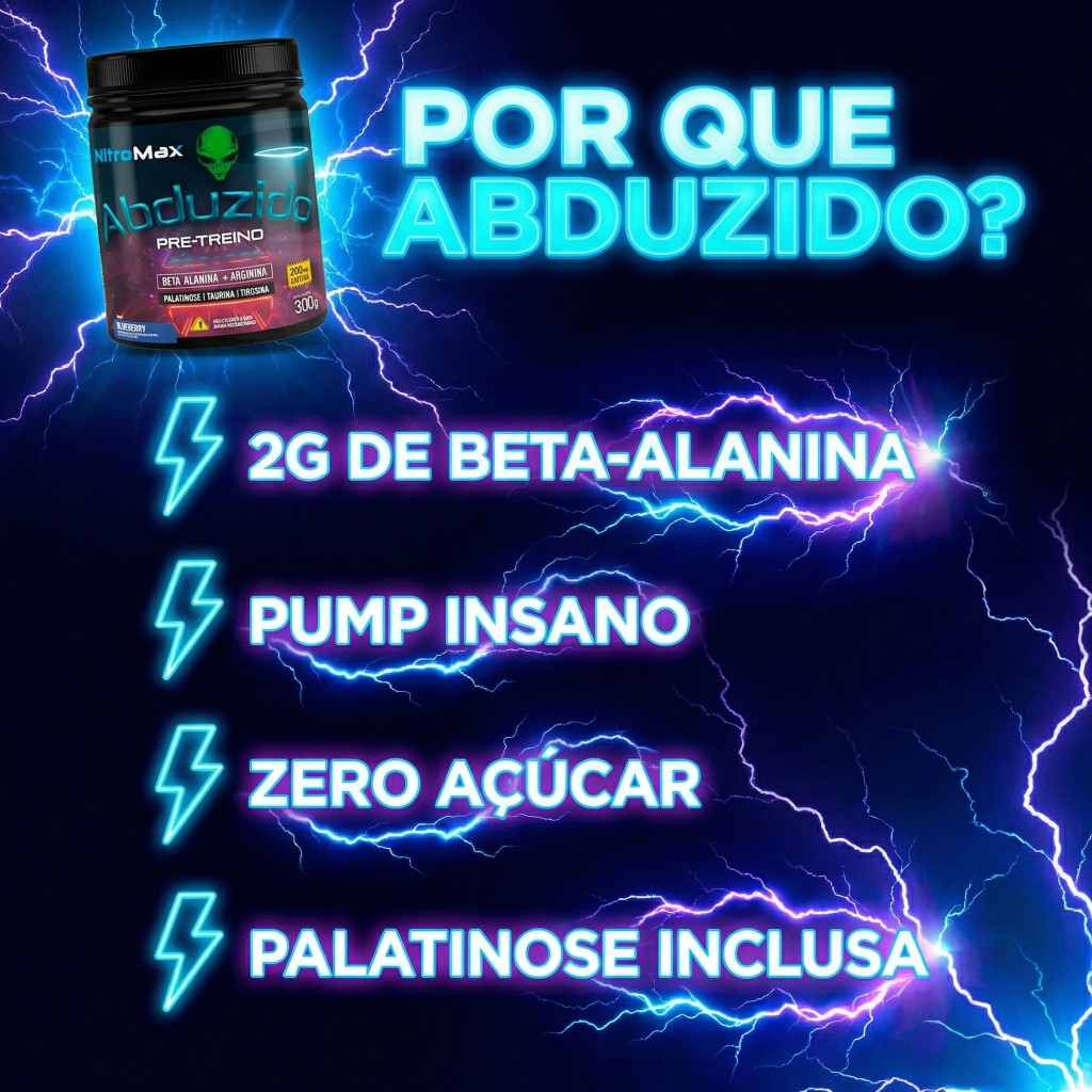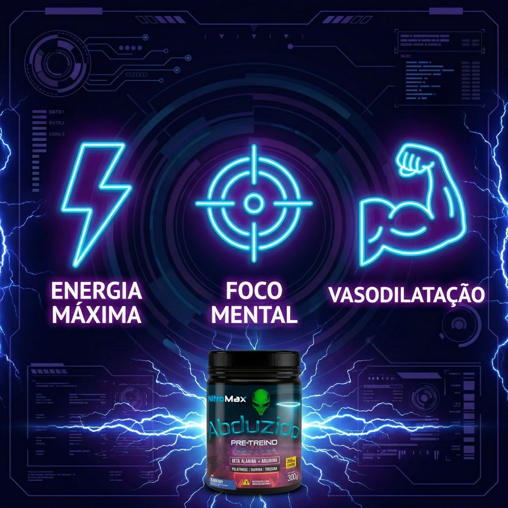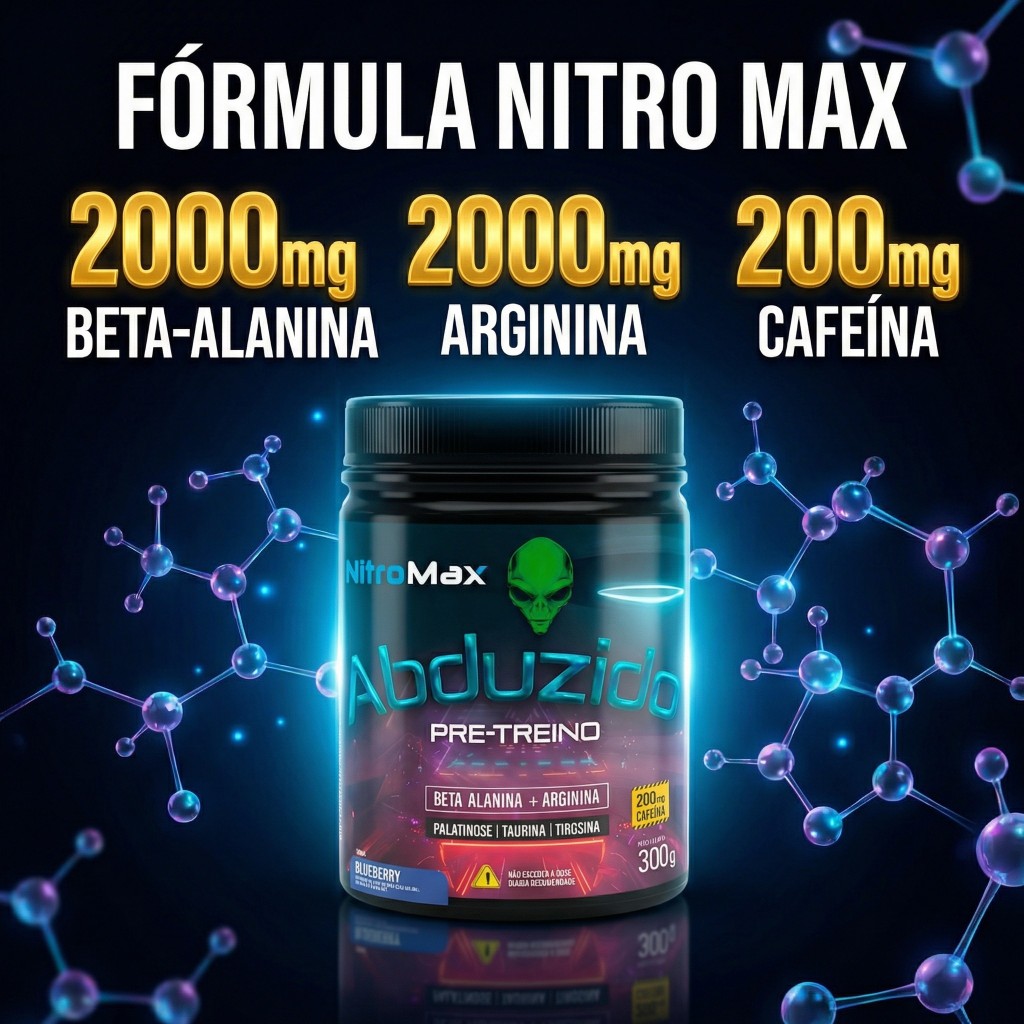 Pré Treino Nitro Max Blueberry 300g Abduzido HF Suplementos Energia Força Foco Máximo Rendimento