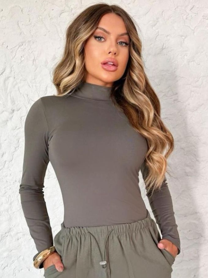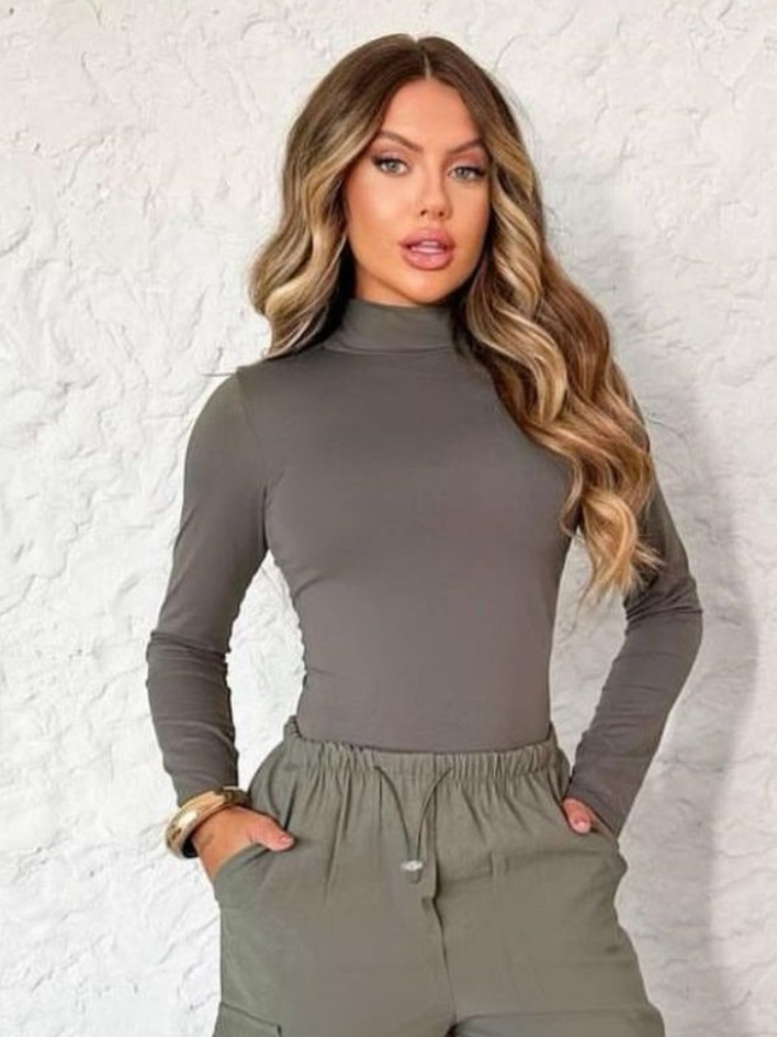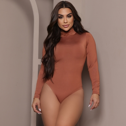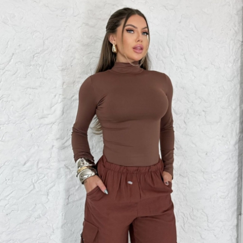 Body Feminino Collant Manga Longa Gola Alta Tecido Suplex Tendência Moda Gringa