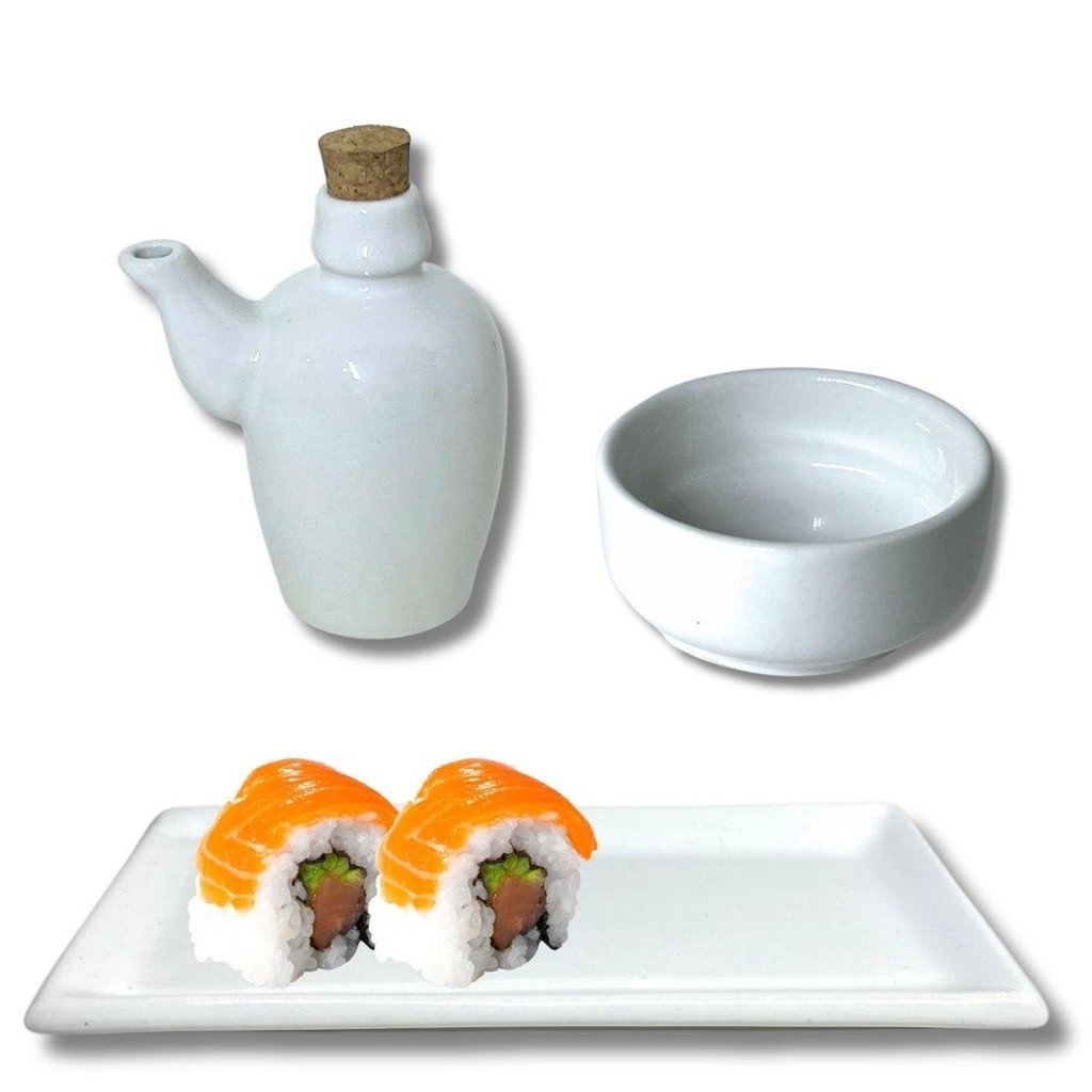 Kit de 6 Pessoas Sushi Nozoki Porcelana Branca Molheira 60ml
