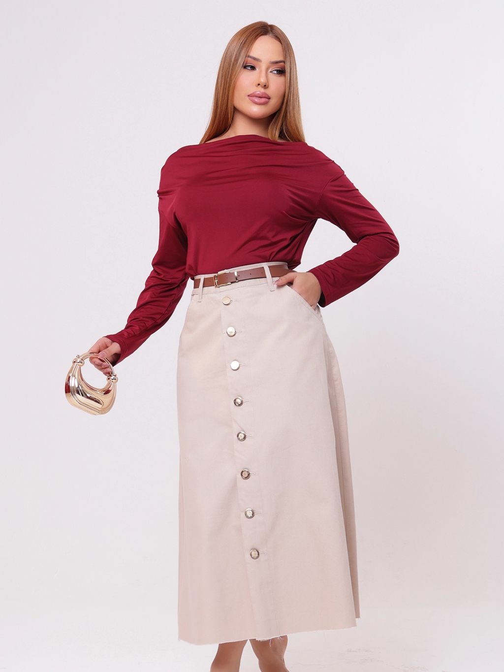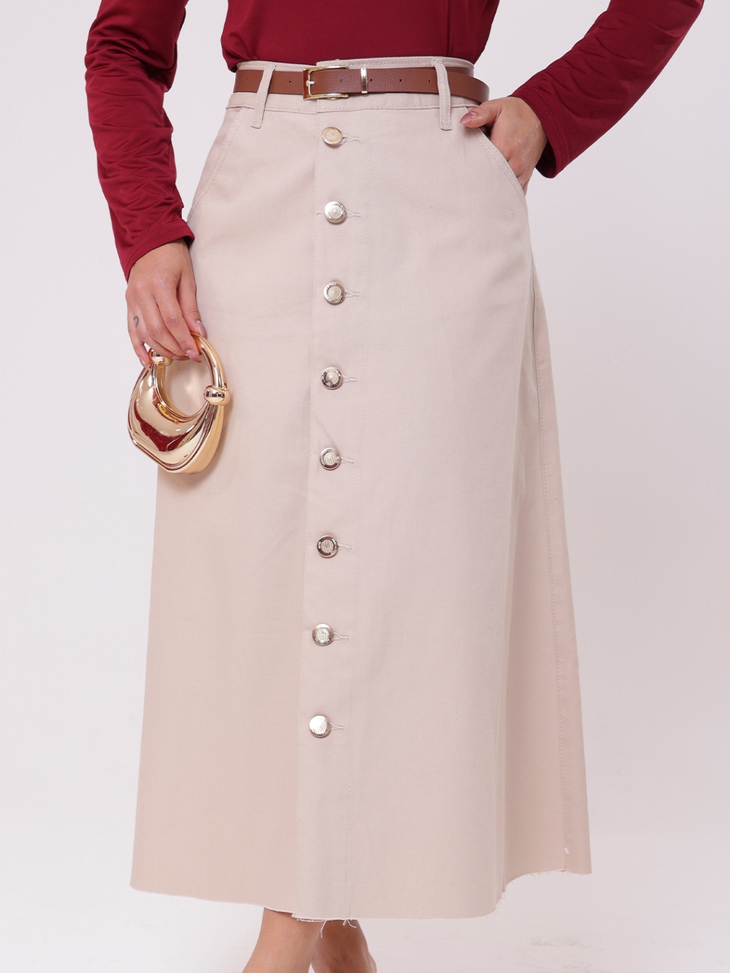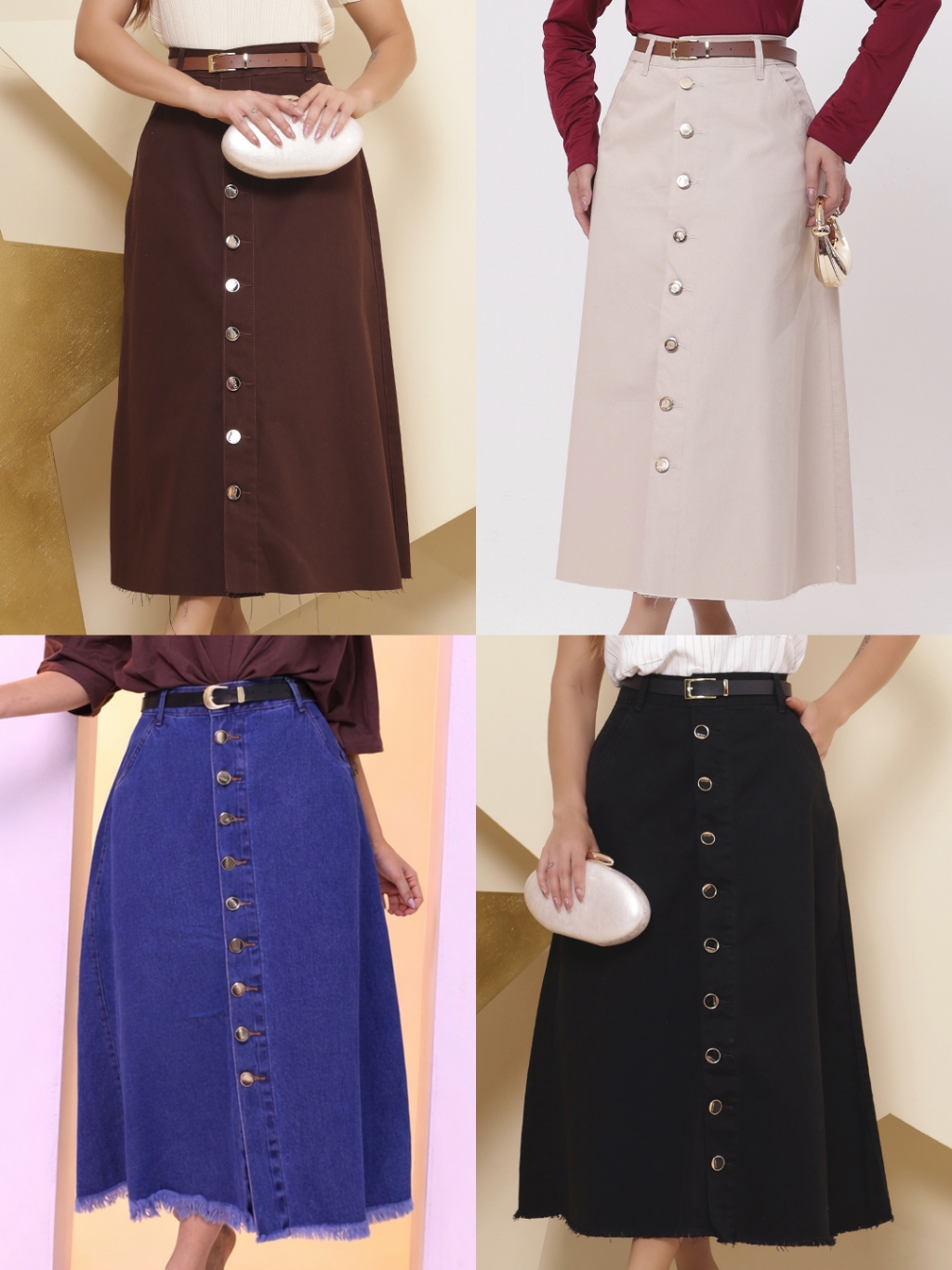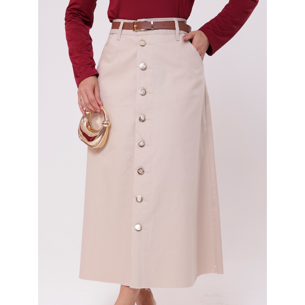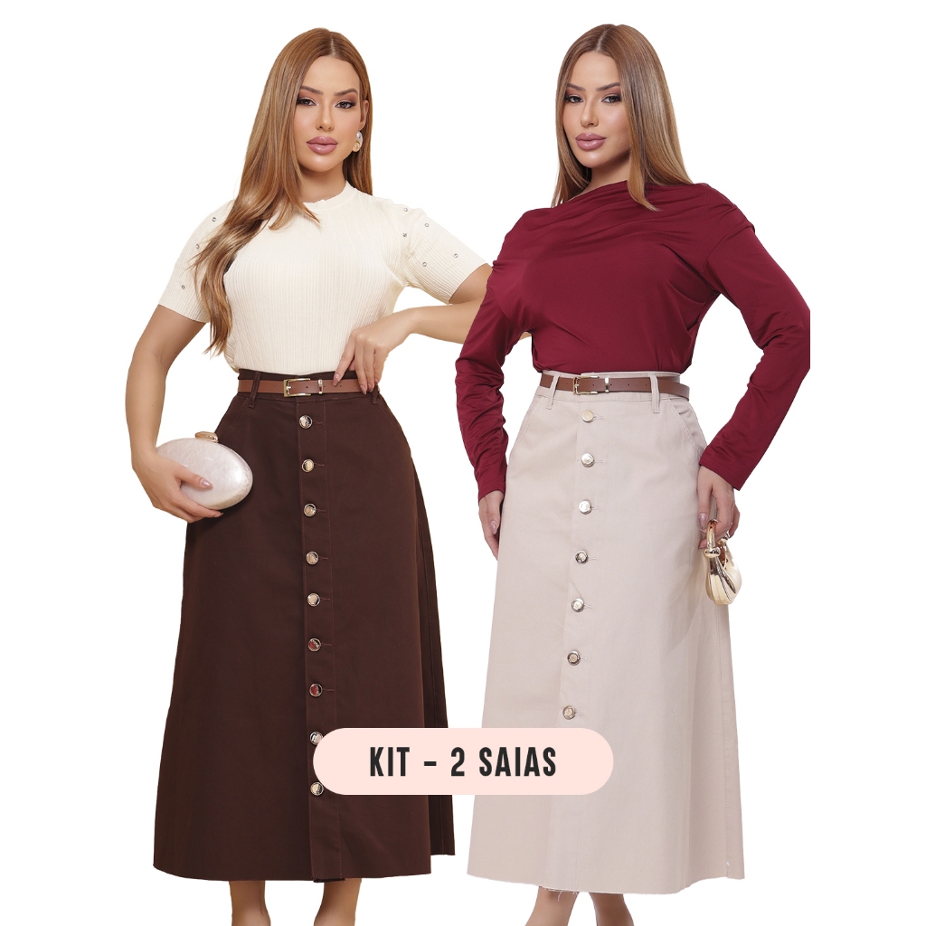 Saia Longa Feminina Moda Evangélica em Brim - Acompanha Cinto - Barra Desfiada
