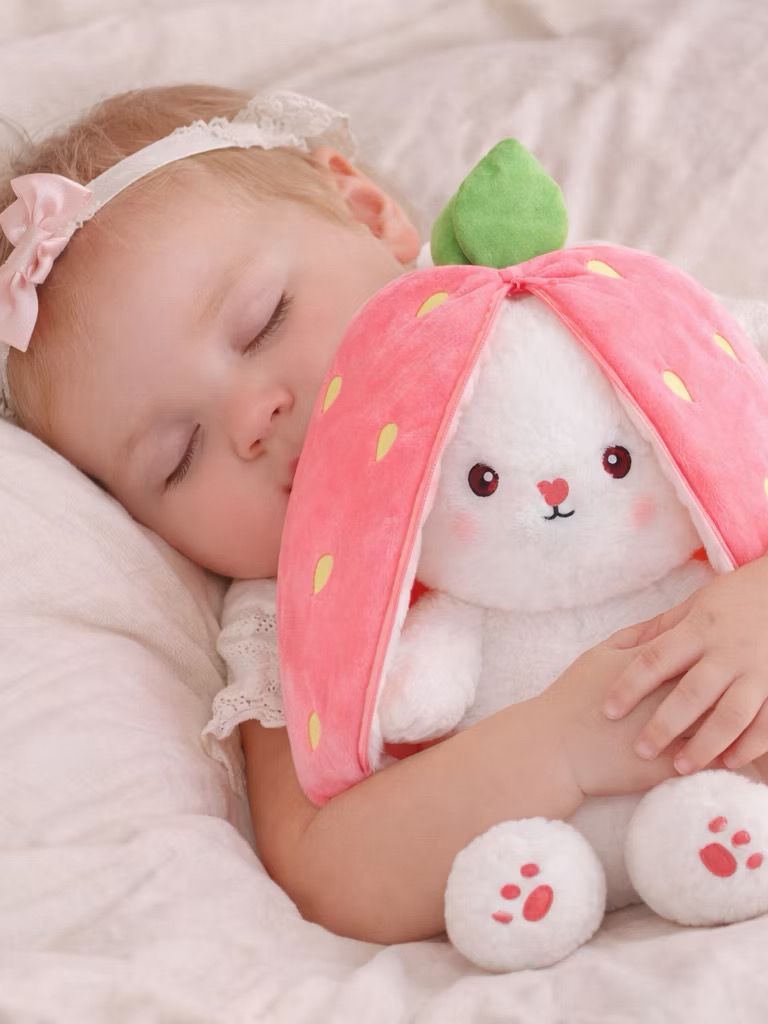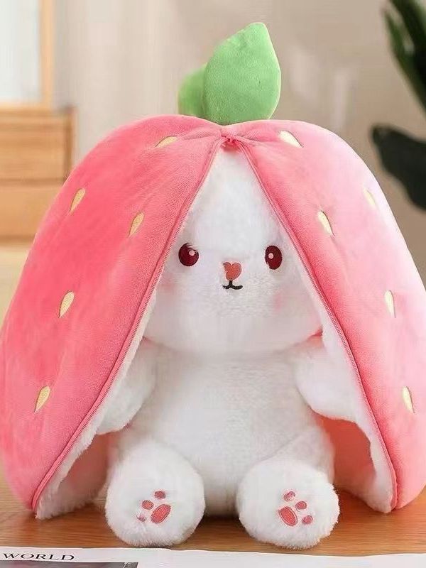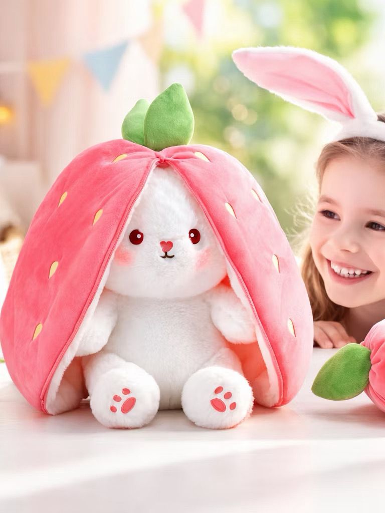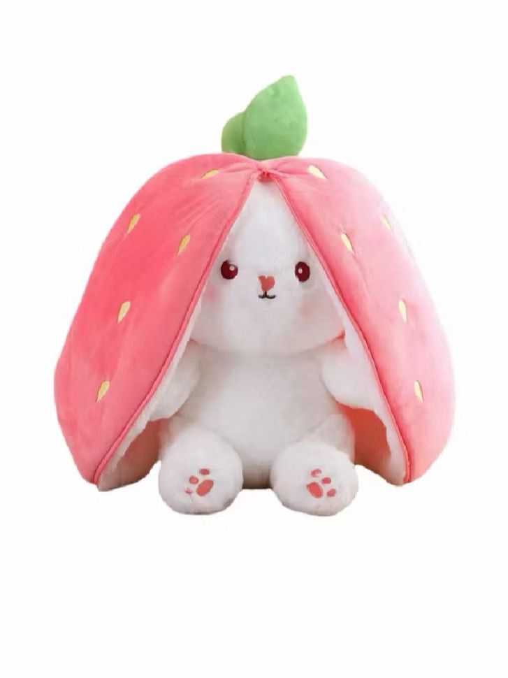 Coelho de Pelúcia Morango, Cenoura Transformável e Travesseiro para Dormir, Presente de Natal Perfeito, Coelhinho