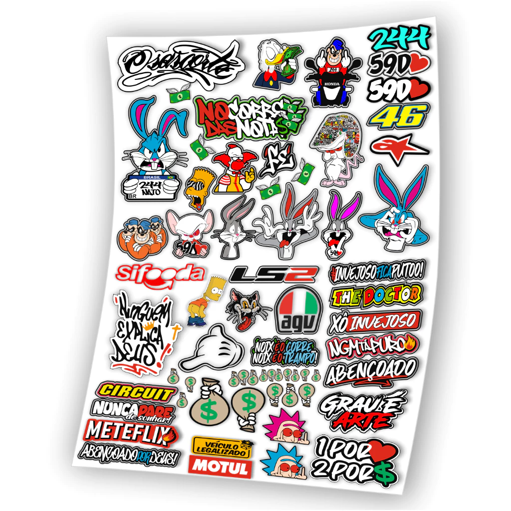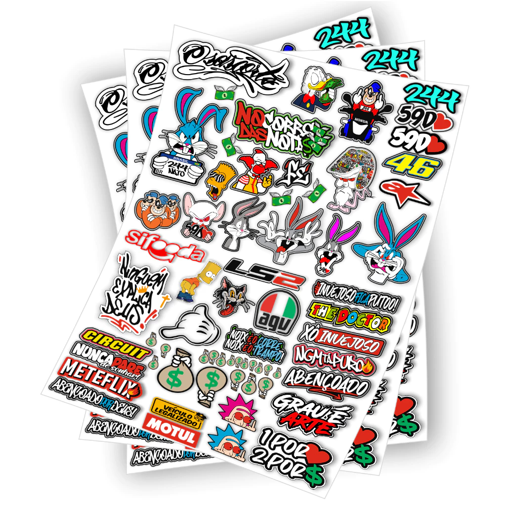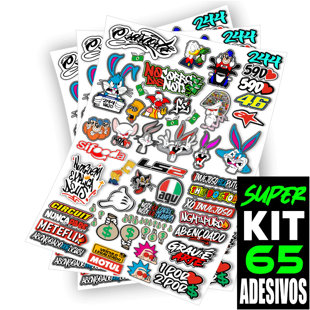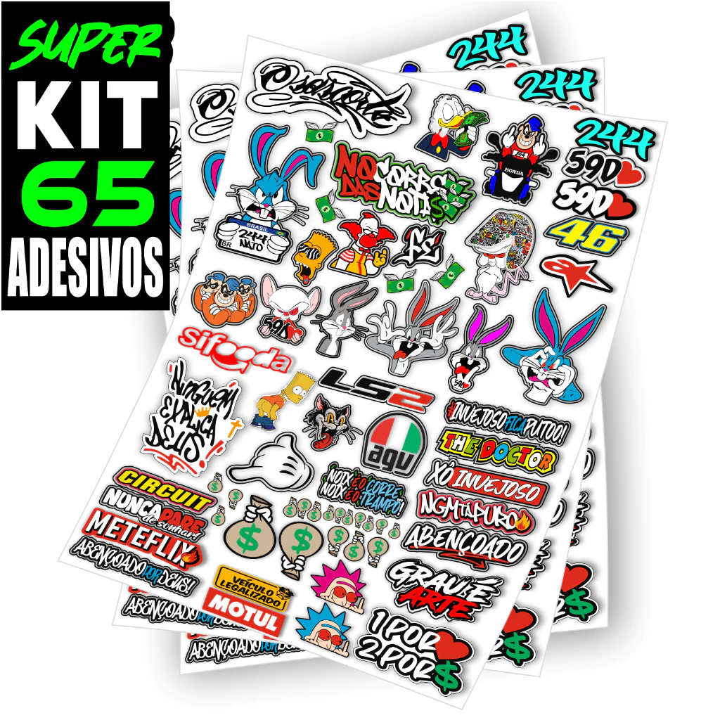 Kit 65 Adesivos Para Capacete Carro Bike Moto Prova D'Água