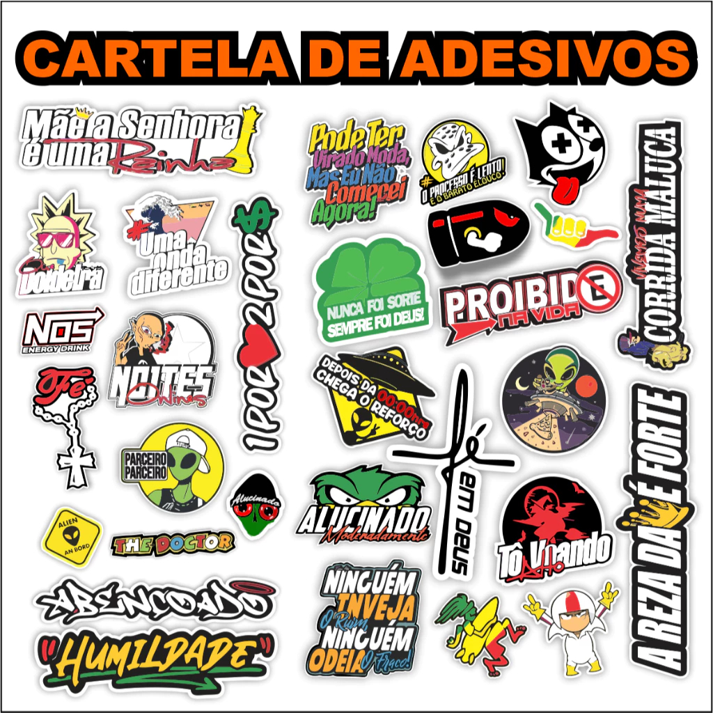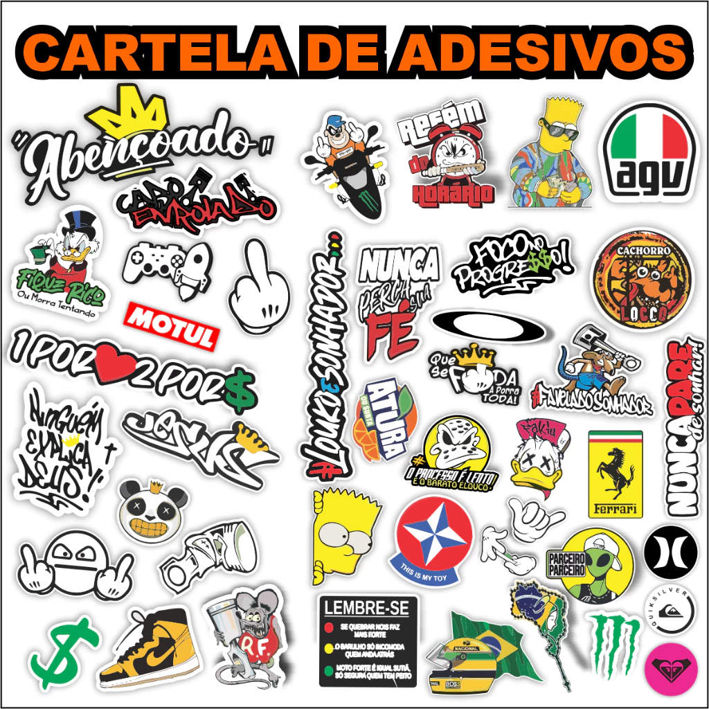 Kit 160 Super Adesivo Para Moto Bike Carro Alta Resolução Super Cartela aprova d'agua