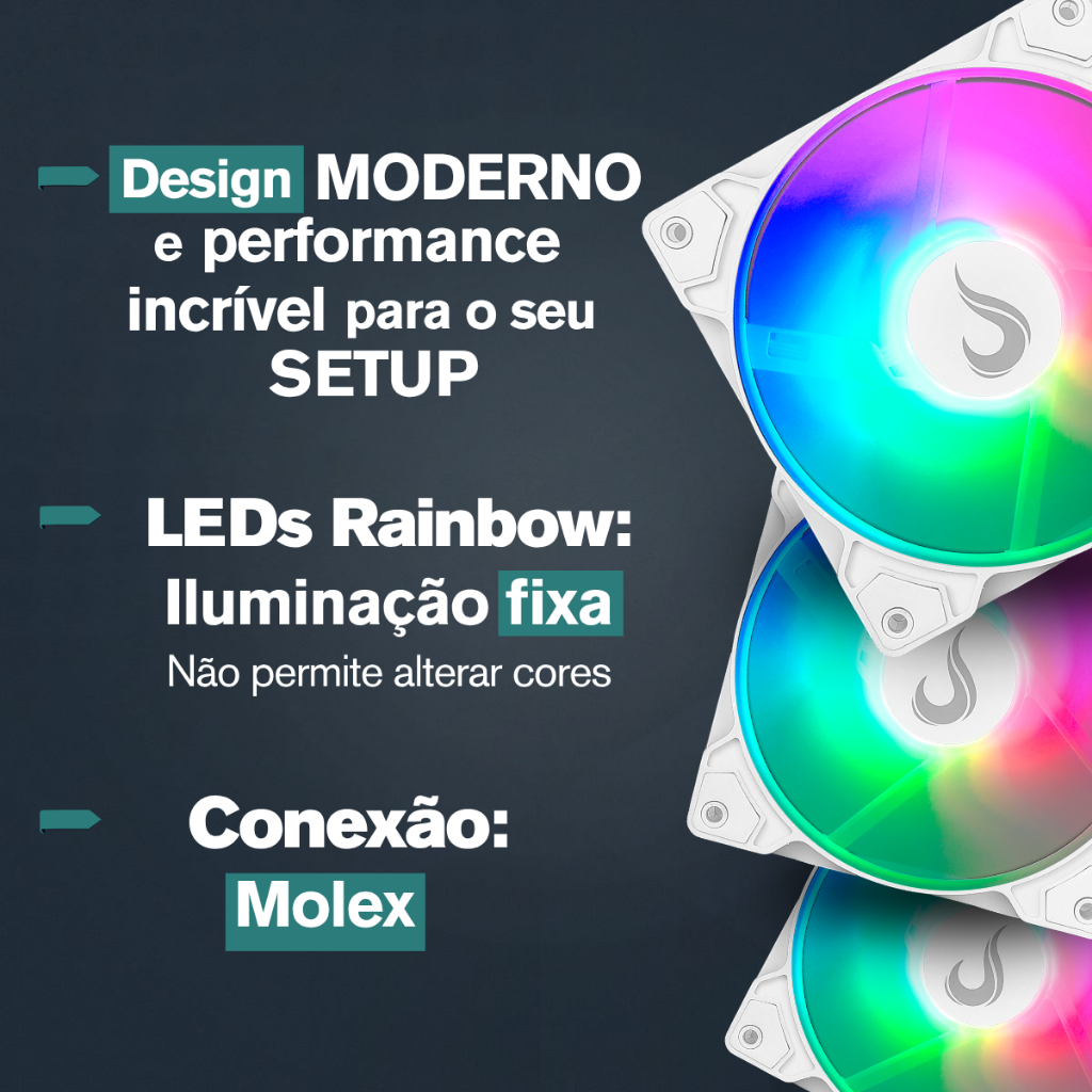 Kit 3 Cooler Fan Gamer | Rise Mode | X Led White Rainbow | 120mm