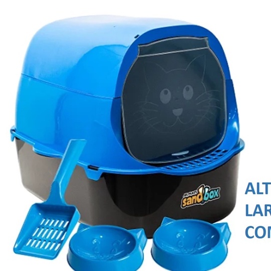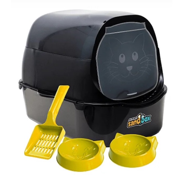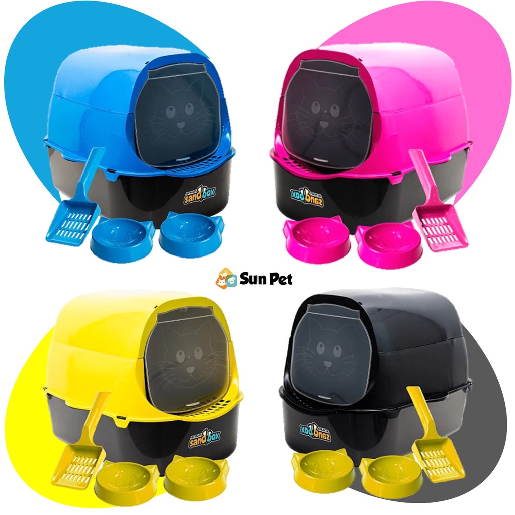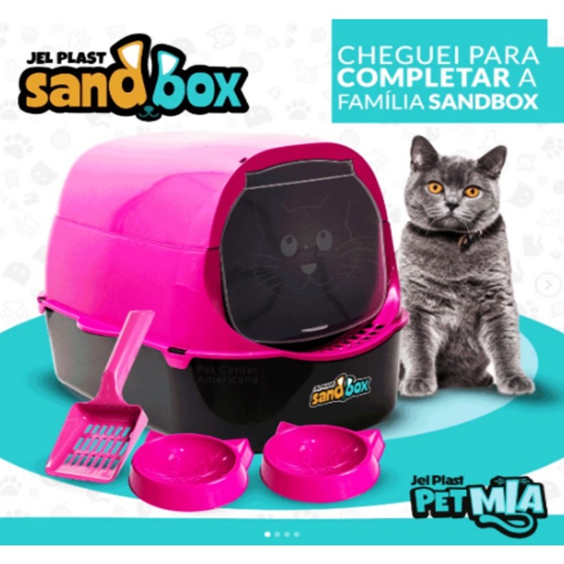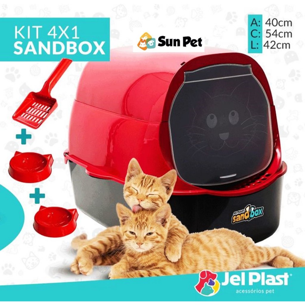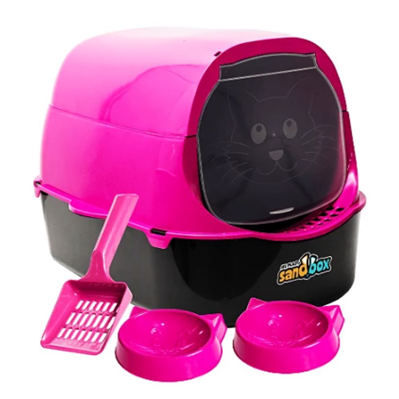 Caixa de Areia Pet Banheiro De Gato Fechada Grande Pet Kit Jel Plast Comedouro e Pazinha