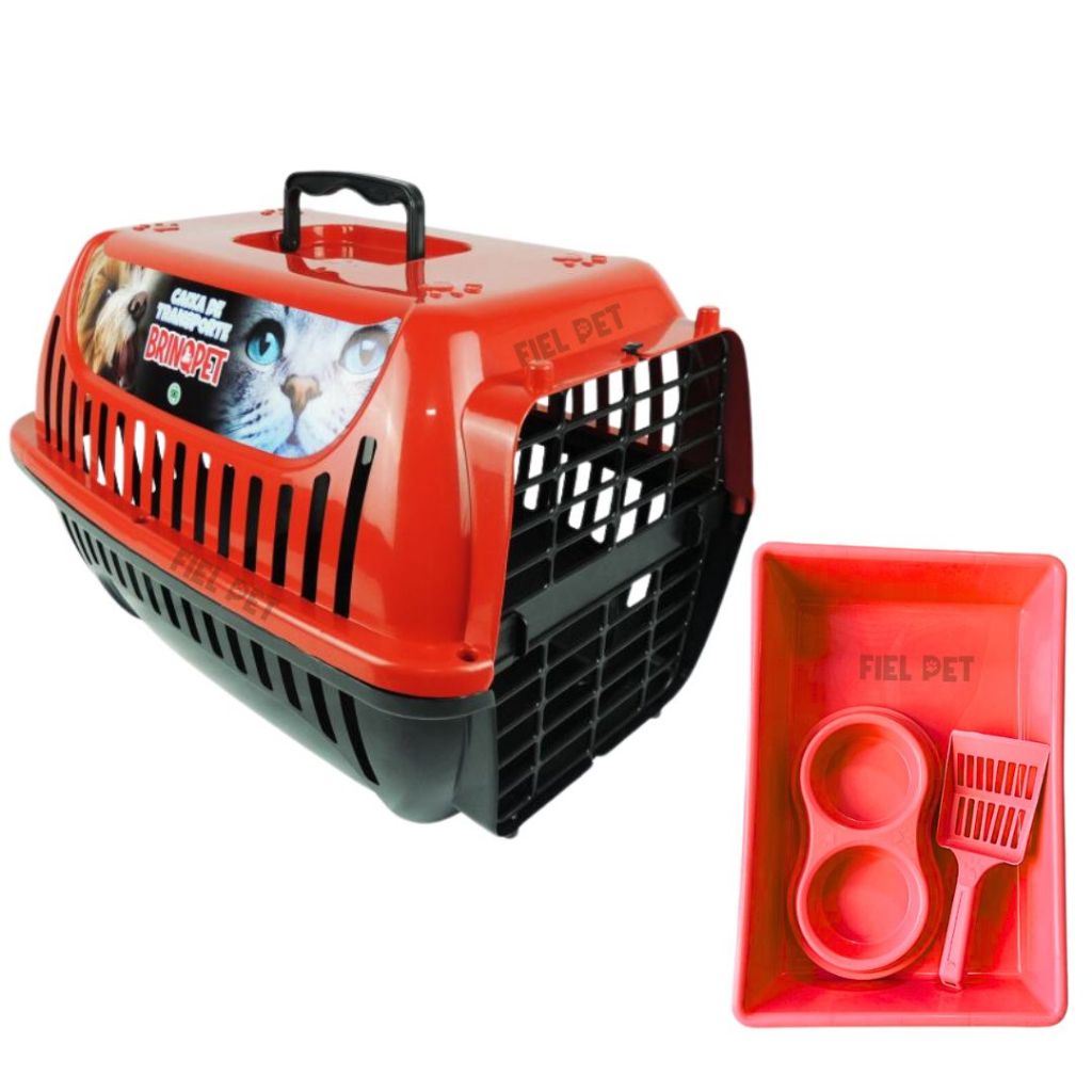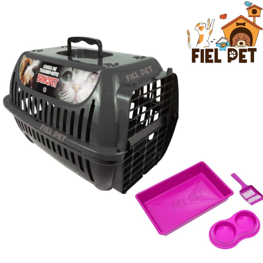 Kit Gato Caixa de Areia Comedouro e Pá / Transporte Brinq Pet N°01