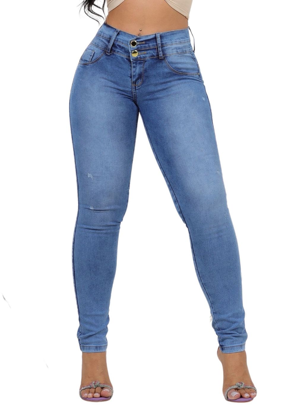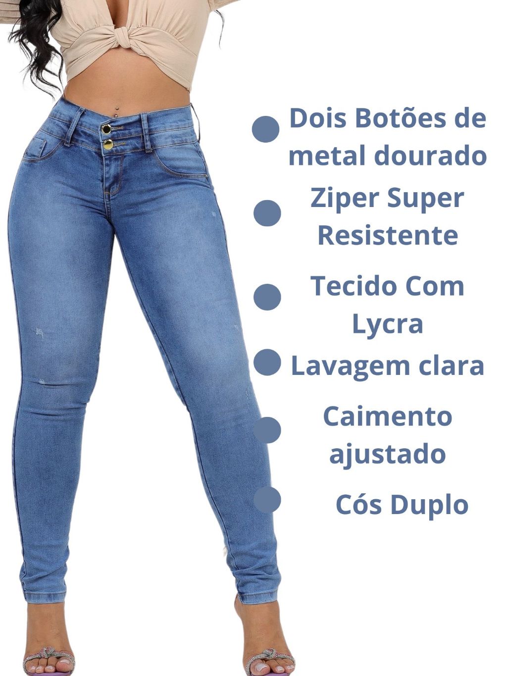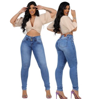 Calça Jeans Feminina Cós Duplo 2 Botões Com Lycra