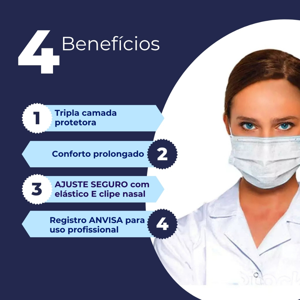 Kit 150 Máscara Descartável Tripla Camada Adulto Branca - Com Elastico