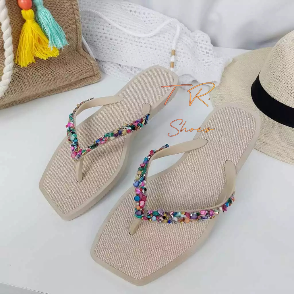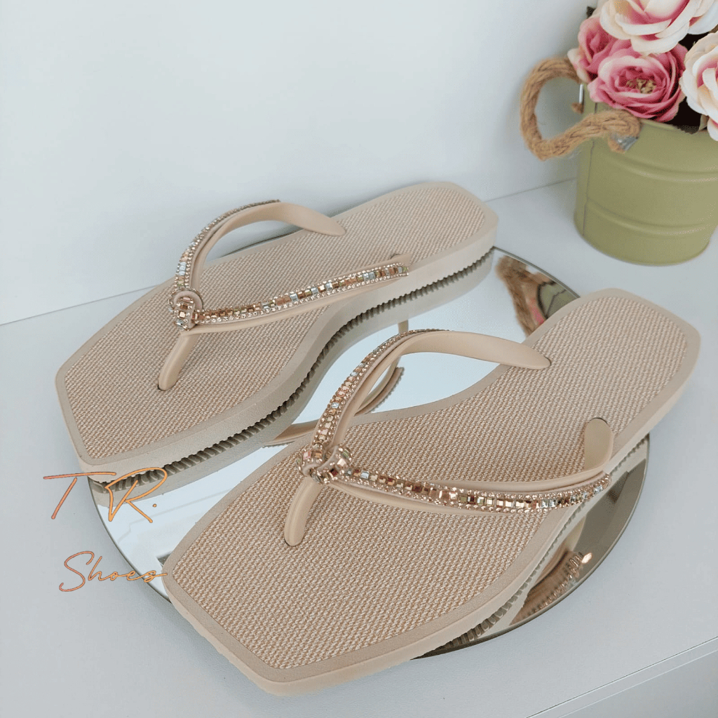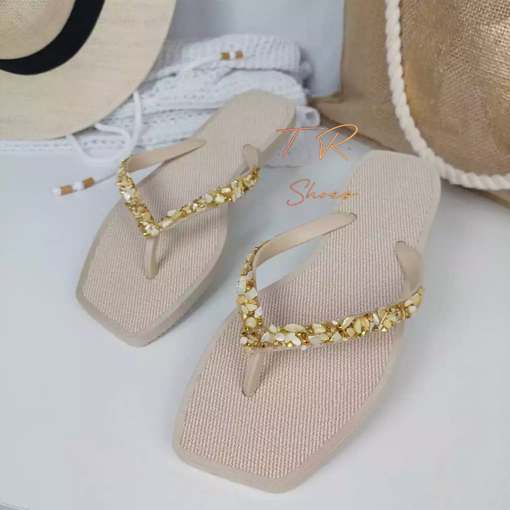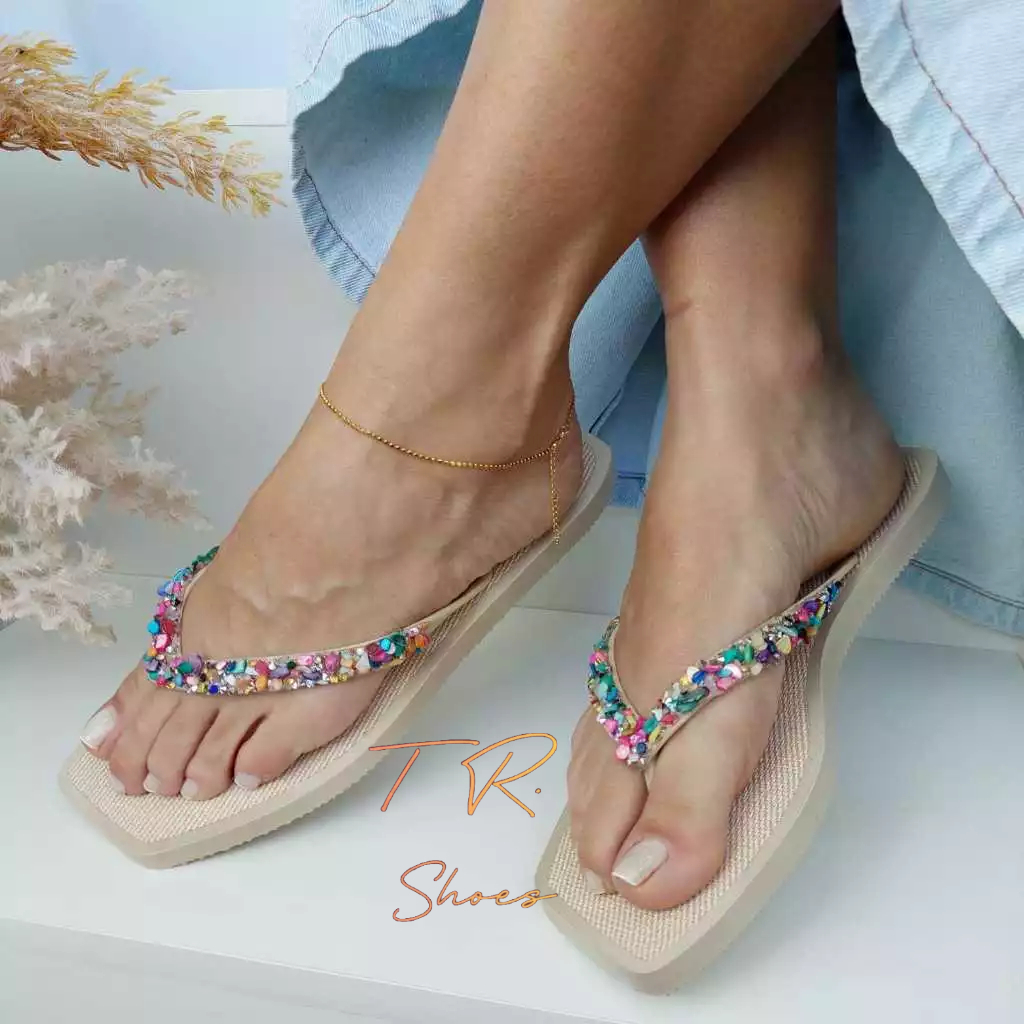 Chinelo Bico Quadrado Feminino com Strass e Pedrarias de Luxo Sandália Moda Praia Qualidade Premium Super Macia e Leve