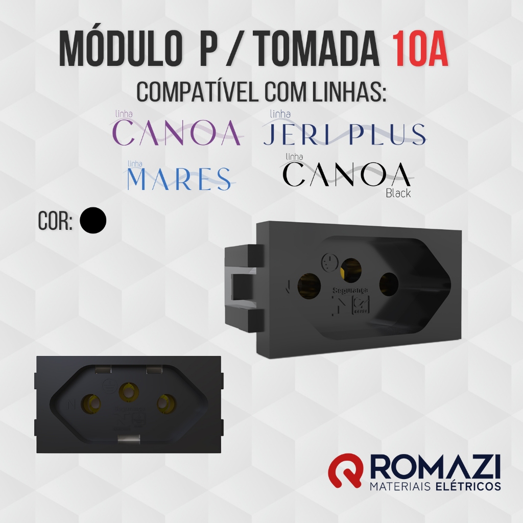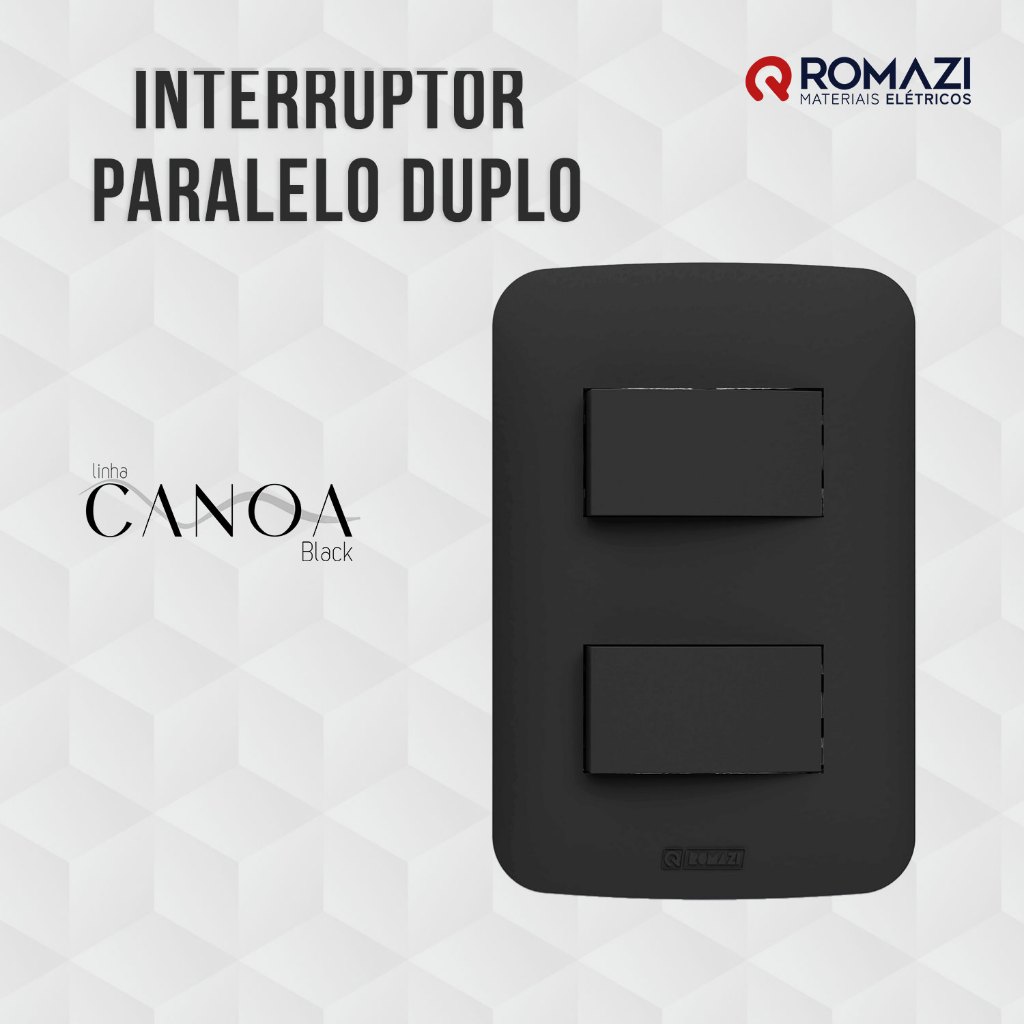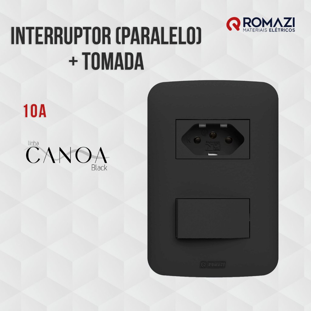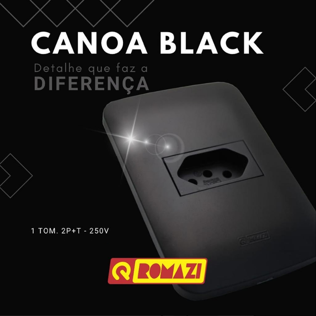 INTERRUPTORES E TOMADAS LINHA CANOA BLACK - ROMAZI