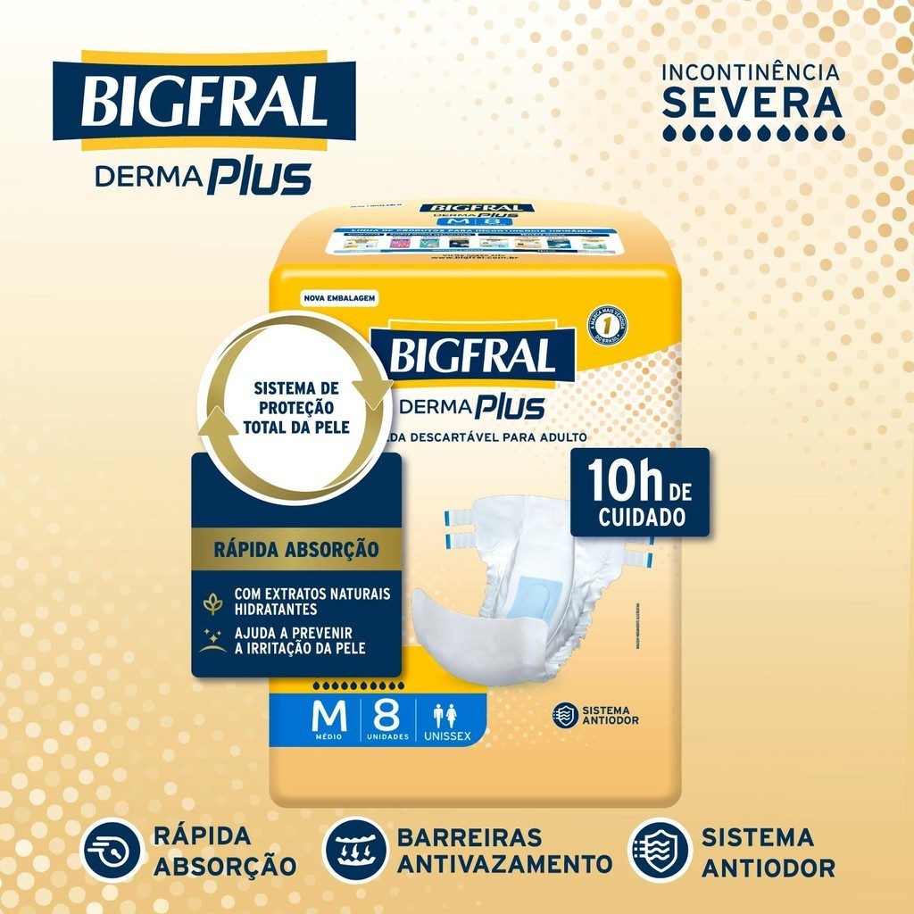Kit 8 Fraldas Geriátricas Bigfral Derma Plus M com 8un cada