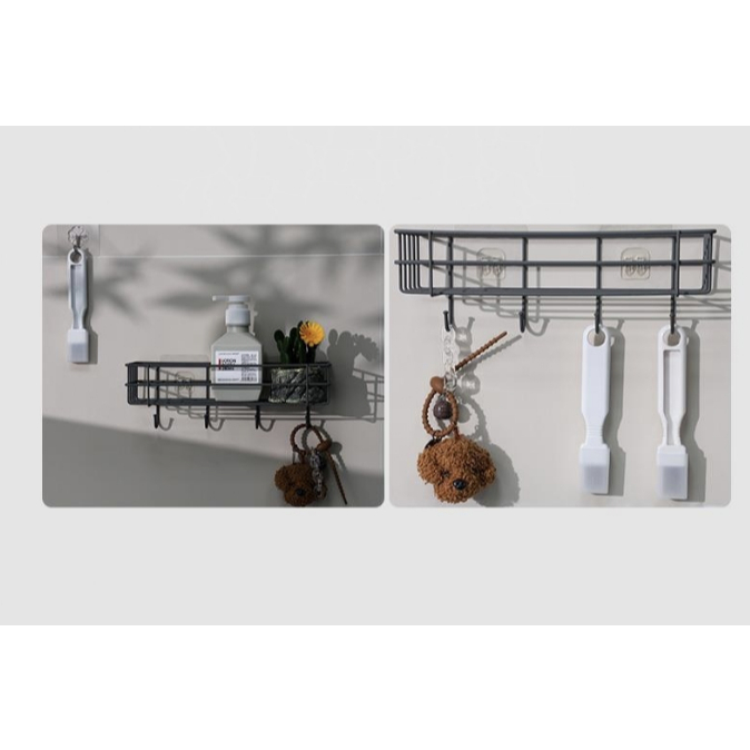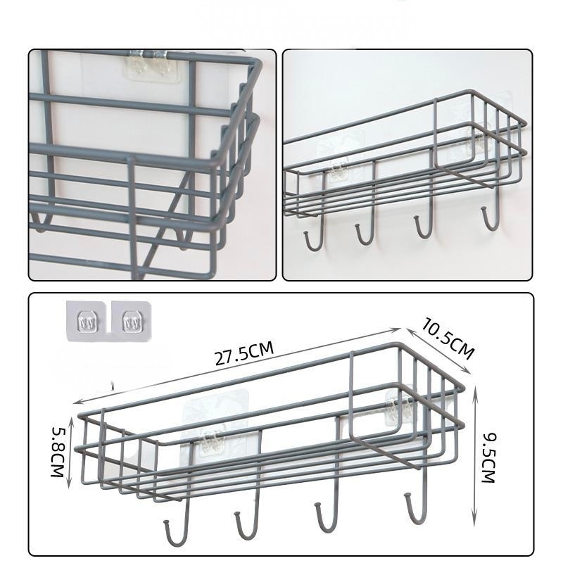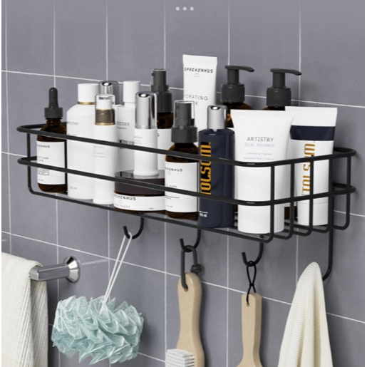 Porta Shampoo Prateleira Suporte Organizador Para Banheiro / Cozinha Metal Com Gancho Suporte de Adesivos Multiuso