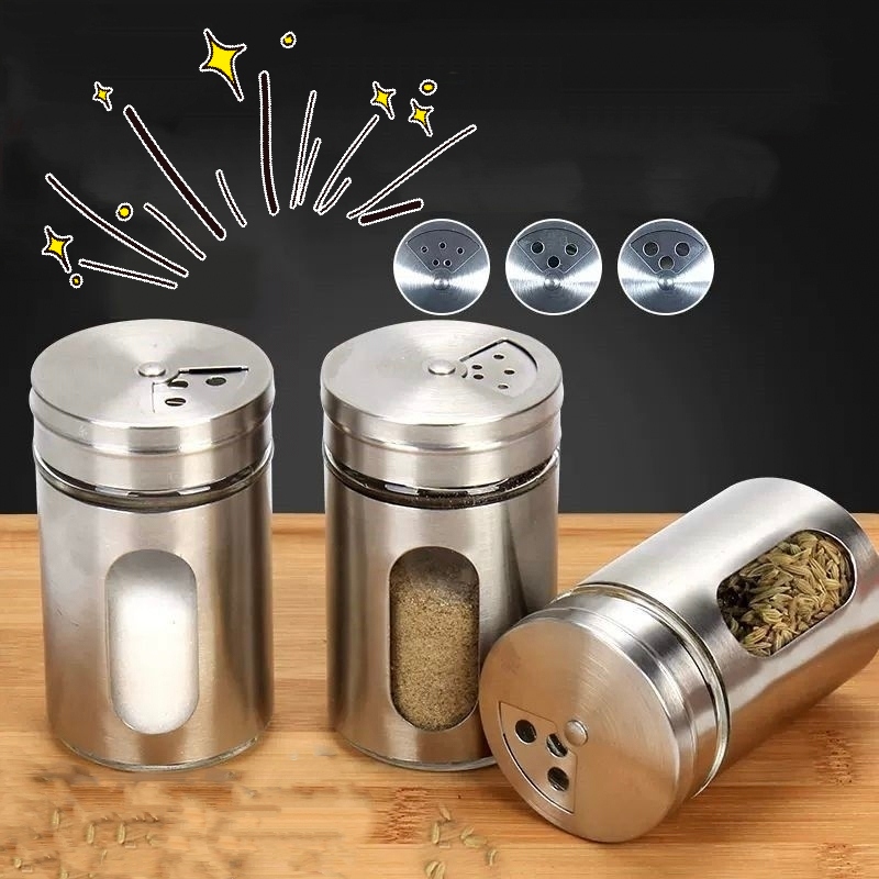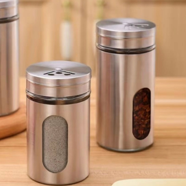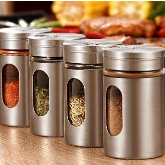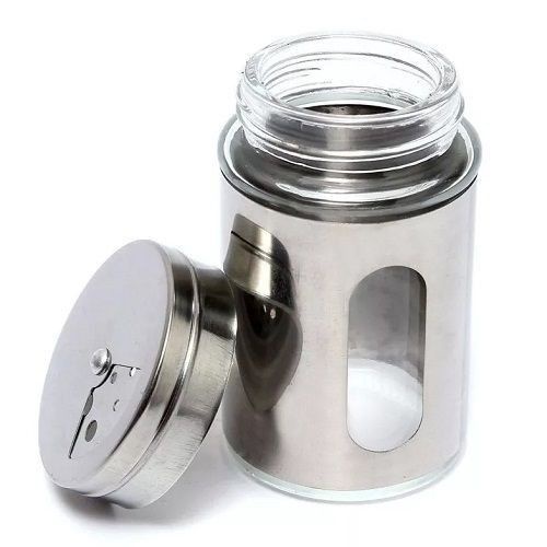 Saleiro Pimenteiro Porta Condimentos Paliteiro Vidro Aço Inox Com Visor Premium Multiuso
