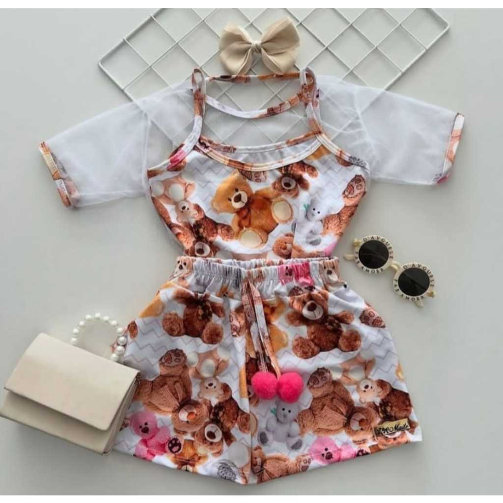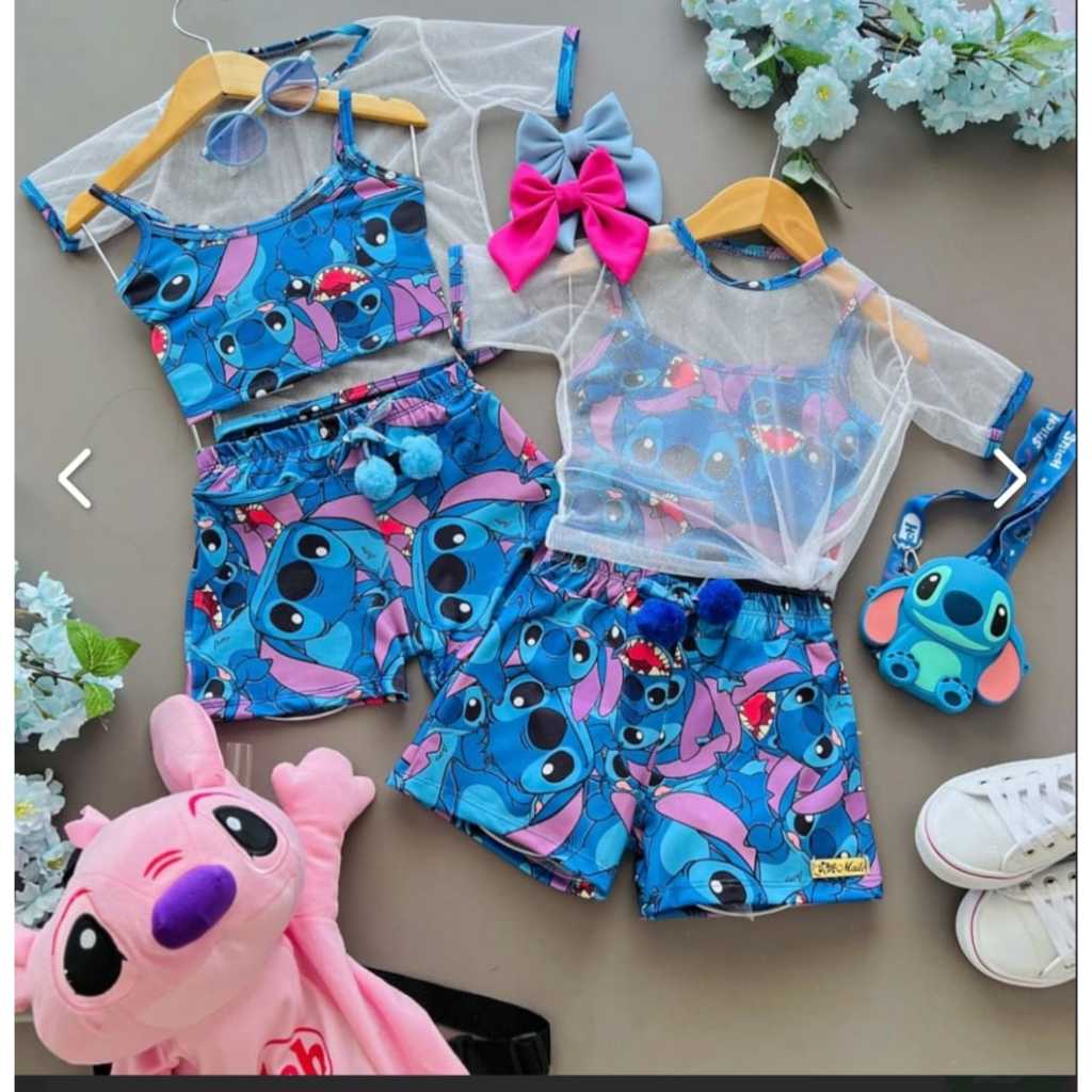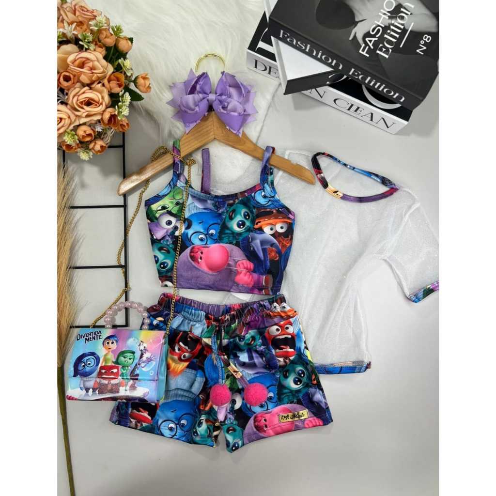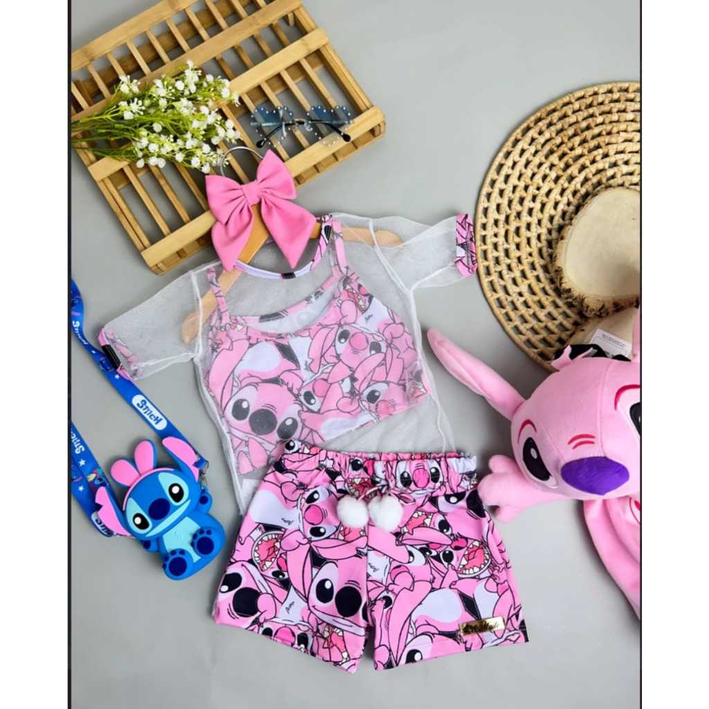 Conjunto infantil menina 3 peças stitch e divertida mente e urso