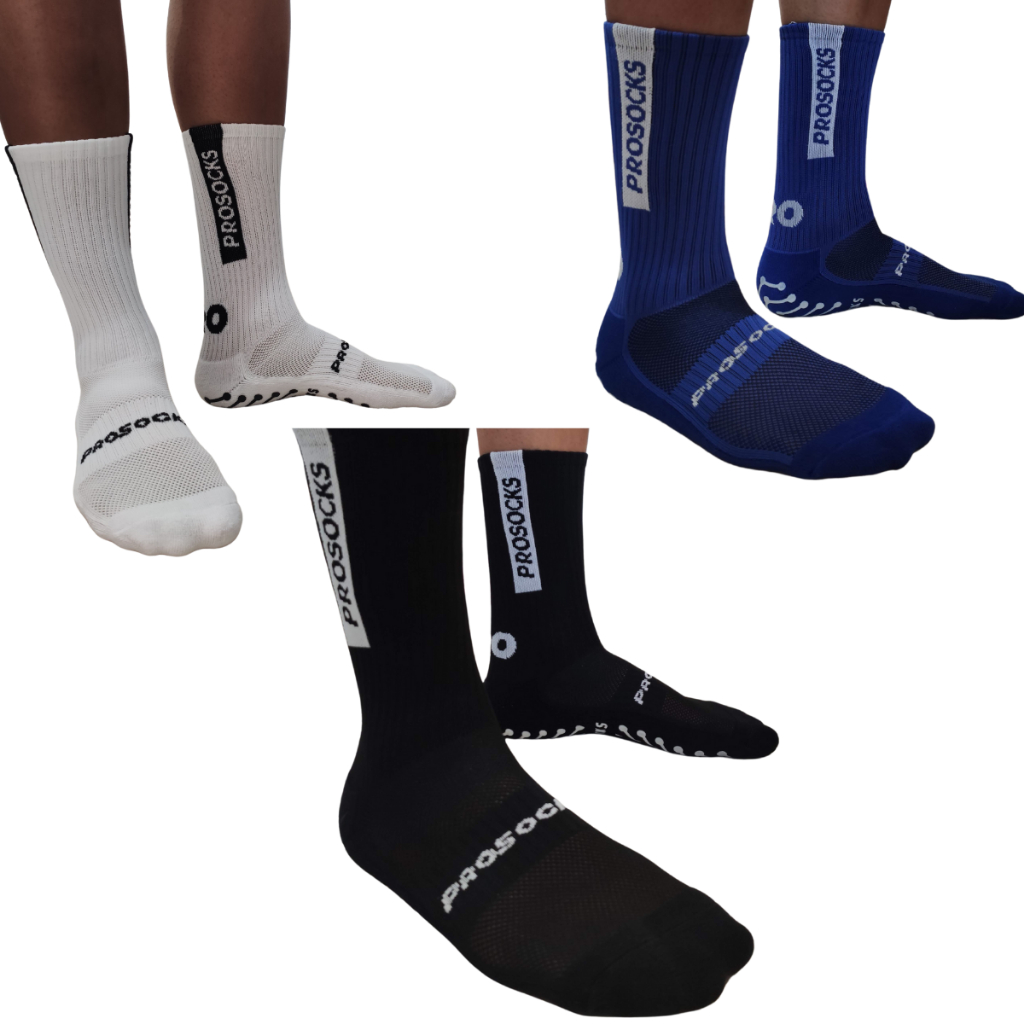 Meia Antiderrapante De Futebol ProSocks Ultragrip Branca Preta Corrida Crossfit Futsal Volei Corrida