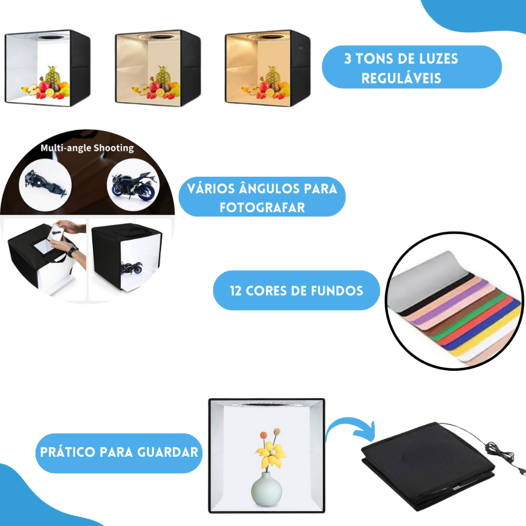 Estudio Fotográfico Grande para produtos Portátil com 12 fundos