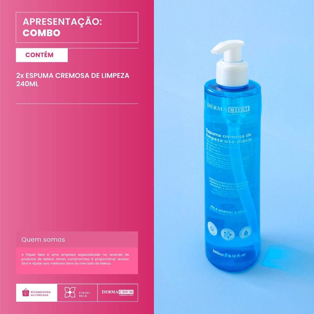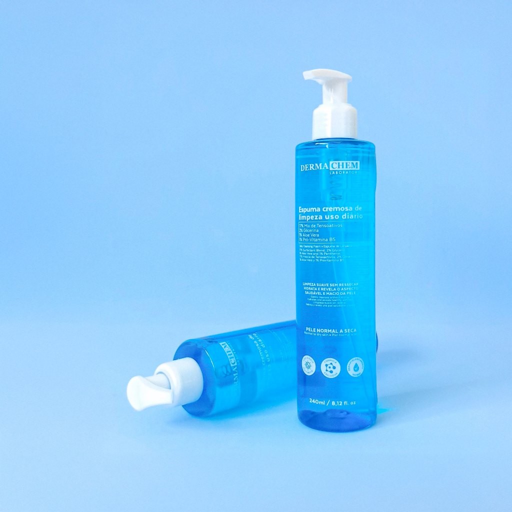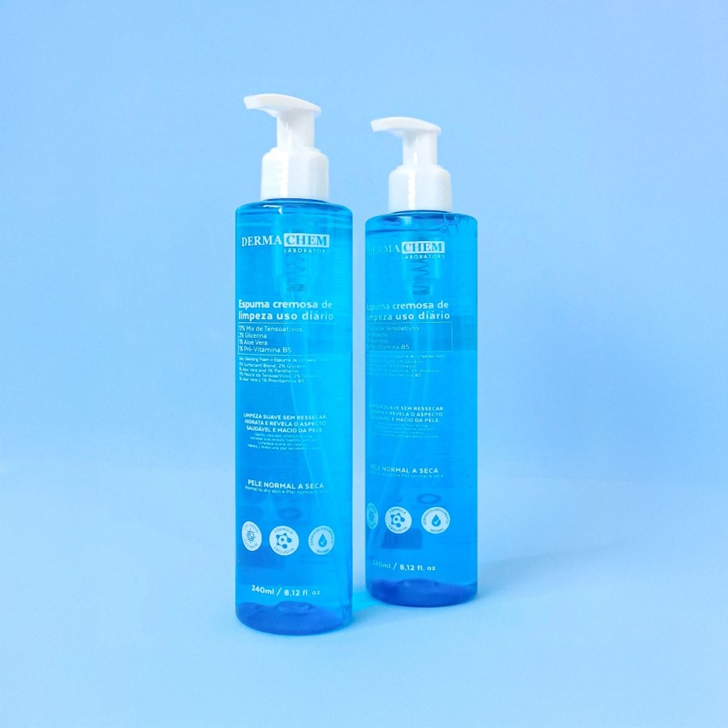 Kit 2 Espuma Cremosa de Limpeza Facial 240ml Hidratação e Maciez da Pele Com Aloe Vera Dermachem