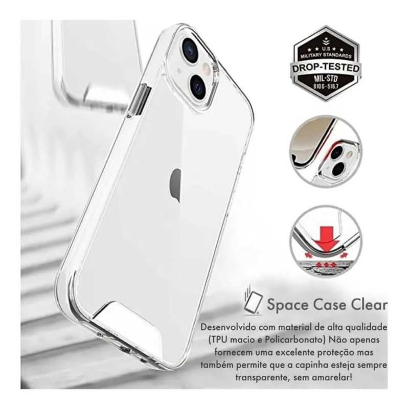 Capa Capinha Space Transparente Anti Impacto Apple para IPhone 13 7 8 Plus Xr 11 12 14 15 16 16E 17 Pro Max Xr Air