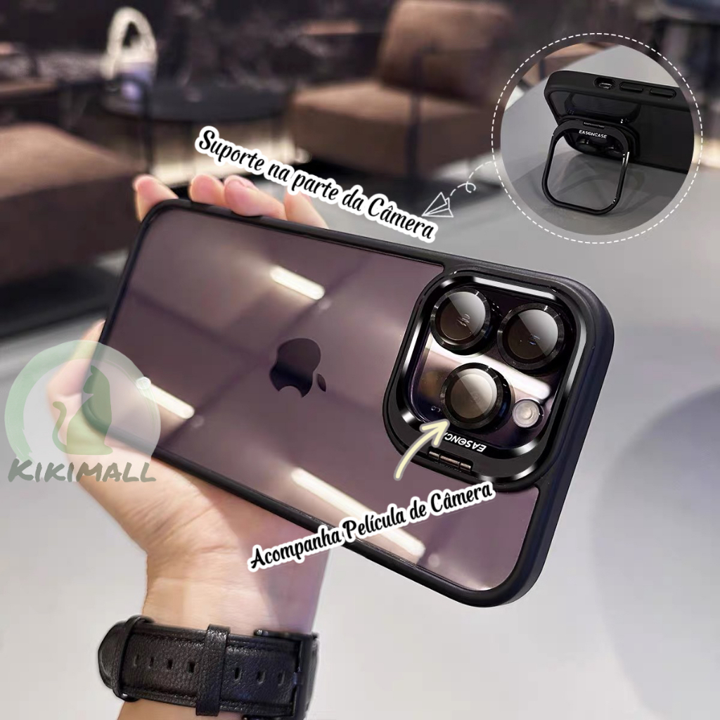 Capa Com Lente e Suporte Câmera Proteção Anti shock iPhone 11 13 15 15Pro 15Promax