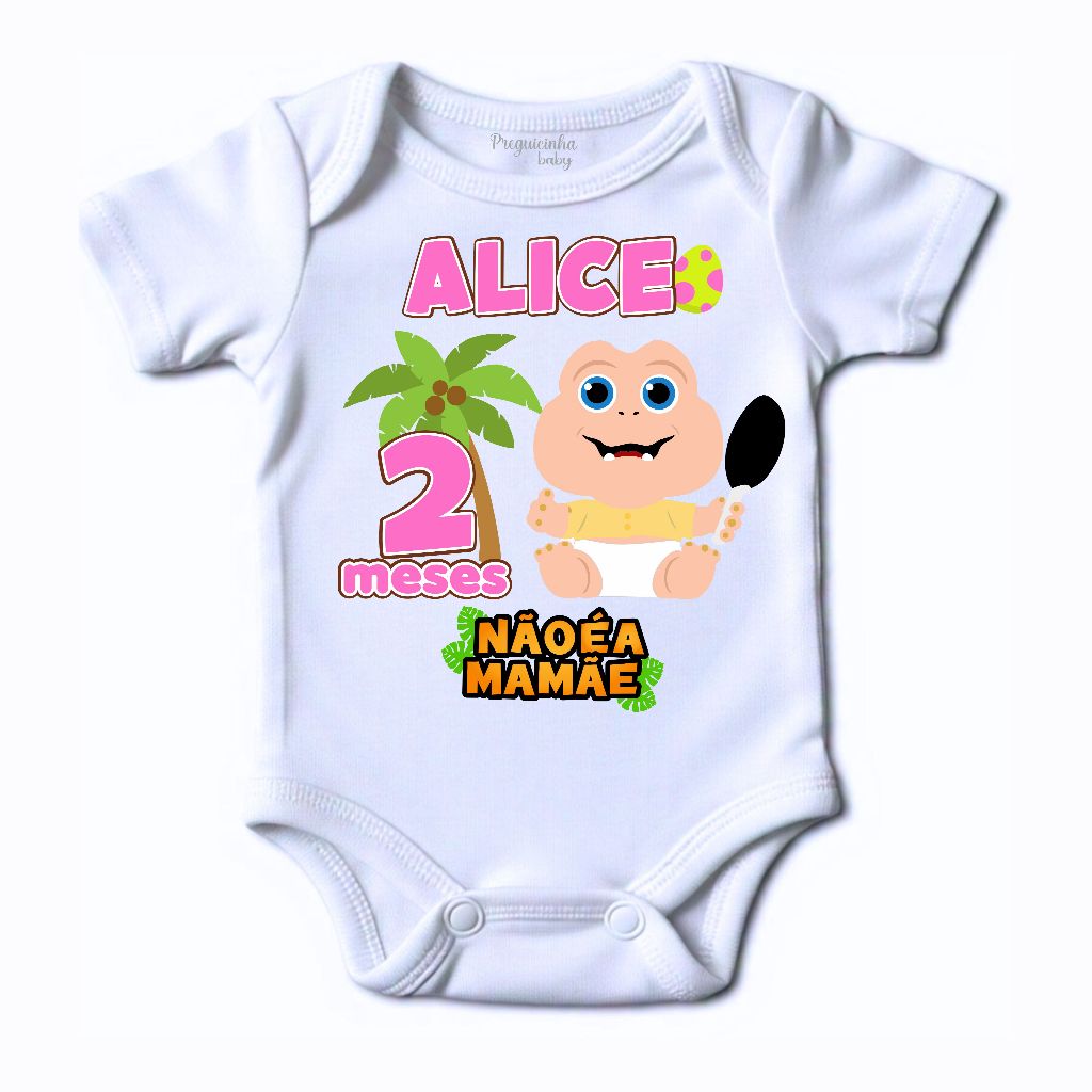 Body bebe tema não é a mamãe personalizado com nome e mes baby familia dinossauro