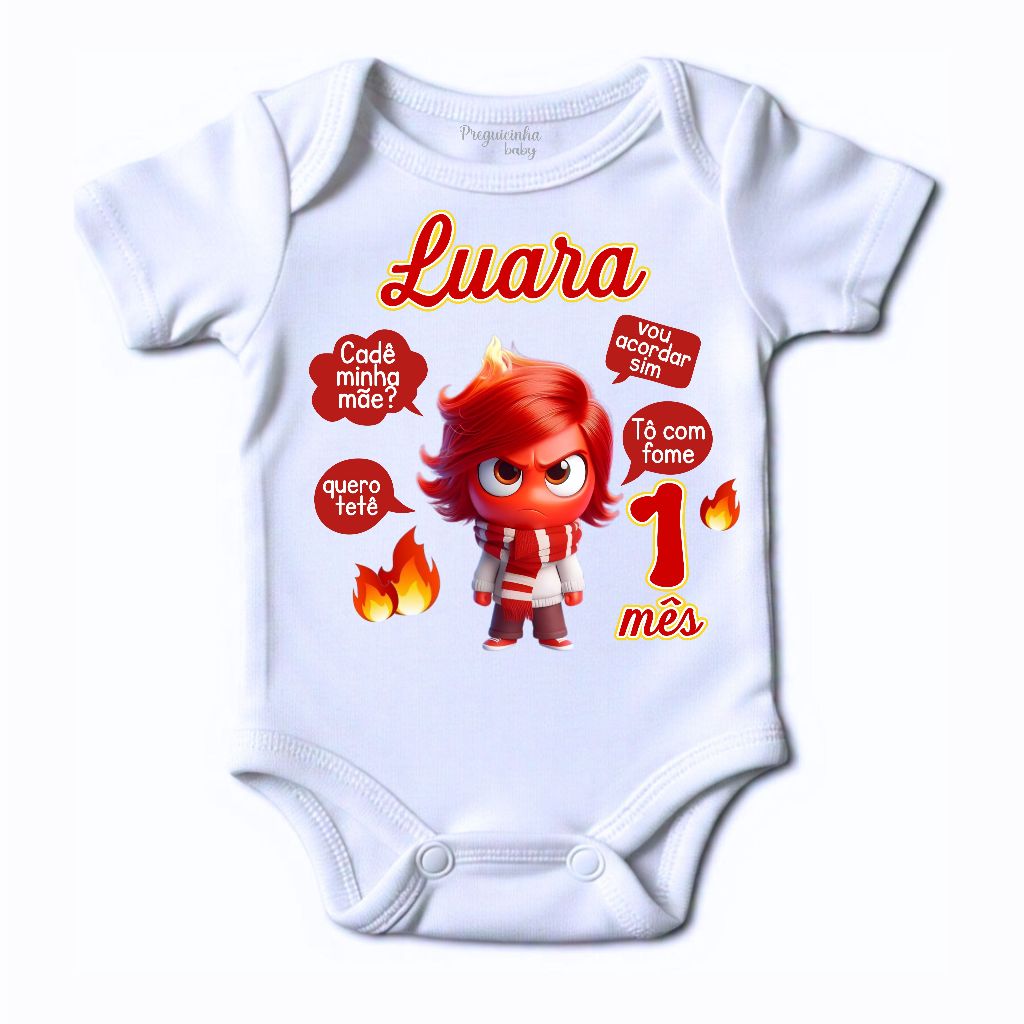 Body bebe personalizado com nome e mes tema raiva divertidamente