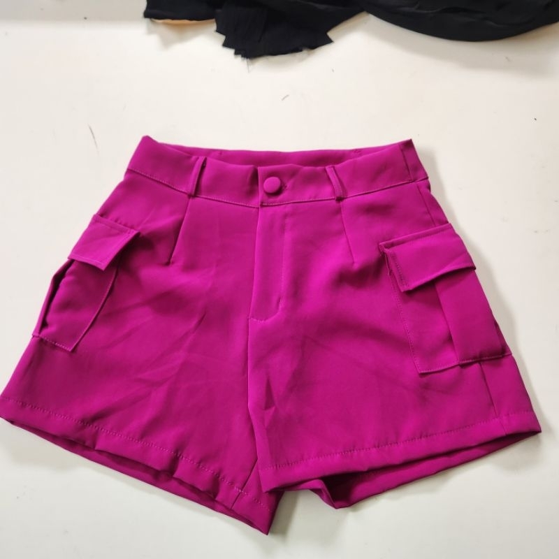 Short Cargo Alfaiataria Feminino Bolso Lateral Cintura Alta - Verão 2025