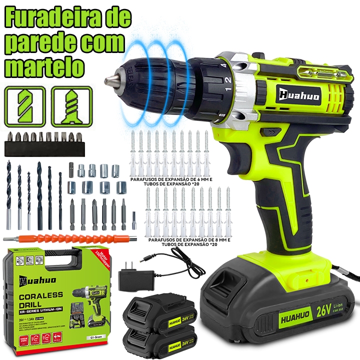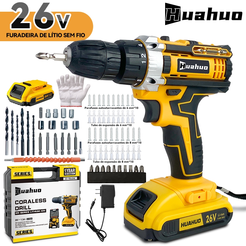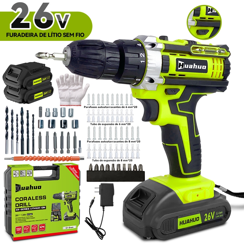 Parafusadeira a bateria Furadeira sem Fio 26v com Maleta de Acessórios.
